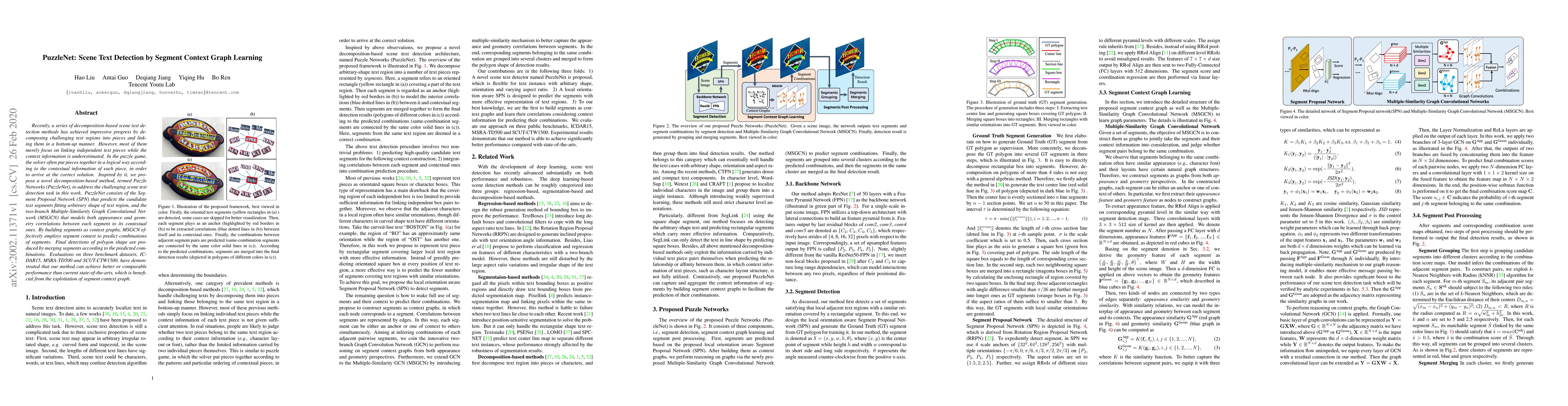 Recently, a series of decomposition-based scene text detection methods has achieved impressive progress by decomposing challenging text regions into pieces and linking them in a bottom-up manner. However, most of them merely focus on linking independent text pieces while the context information is underestimated. In the puzzle game, the solver often put pieces together in a logical way according to the contextual information of each piece, in order to arrive at the correct solution. Inspired by it, we propose a novel decomposition-based method, termed Puzzle Networks (PuzzleNet), to address the challenging scene text detection task in this work. PuzzleNet consists of the Segment Proposal Network (SPN) that predicts the candidate text segments fitting arbitrary shape of text region, and the two-branch Multiple-Similarity Graph Convolutional Network (MSGCN) that models both appearance and geometry correlations between each segment to its contextual ones. By building segments as context graphs, MSGCN effectively employs segment context to predict combinations of segments. Final detections of polygon shape are produced by merging segments according to the predicted combinations. Evaluations on three benchmark datasets, ICDAR15, MSRA-TD500 and SCUT-CTW1500, have demonstrated that our method can achieve better or comparable performance than current state-of-the-arts, which is beneficial from the exploitation of segment context graph.