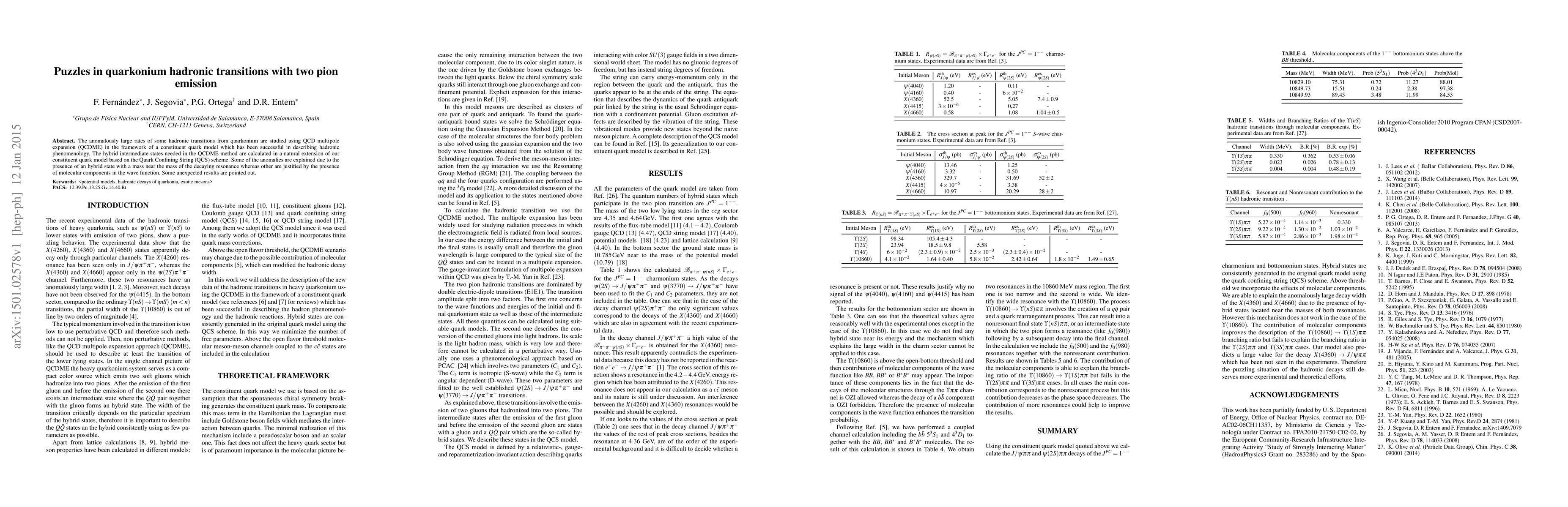 The anomalously large rates of some hadronic transitions from quarkonium are studied using QCD multipole expansion (QCDME) in the framework of a constituent quark model which has been successful in describing hadronic phenomenology. The hybrid intermediate states needed in the QCDME method are calculated in a natural extension of our constituent quark model based on the Quark Confining String (QCS) scheme. Some of the anomalies are explained due to the presence of an hybrid state with a mass near the mass of the decaying resonance whereas other are justified by the presence of molecular components in the wave function. Some unexpected results are pointed out.