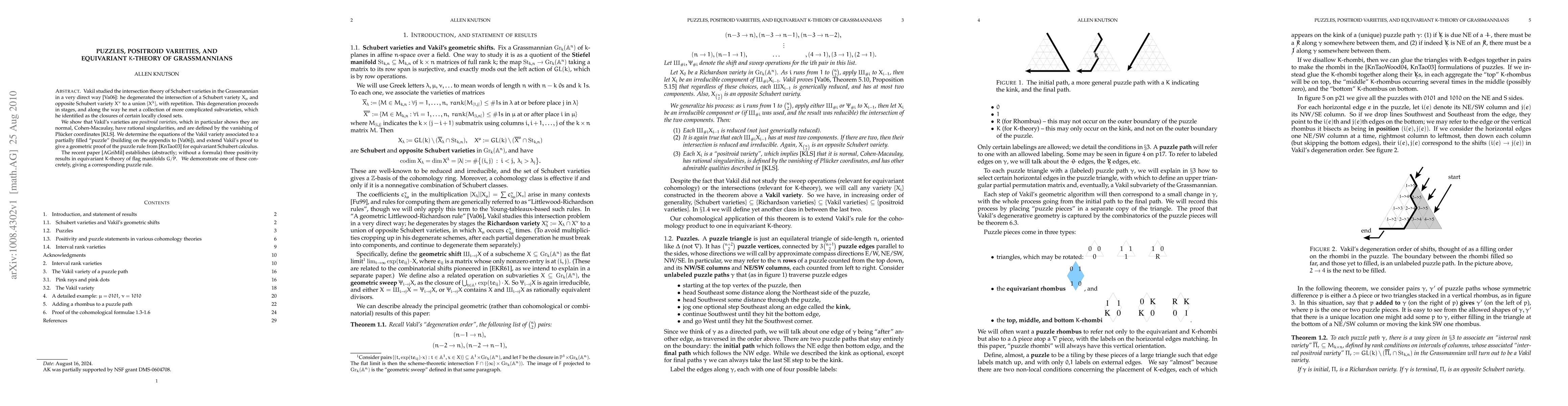 Vakil studied the intersection theory of Schubert varieties in the Grassmannian in a very direct way: he degenerated the intersection of a Schubert variety X_mu and opposite Schubert variety X^nu to a union {X^lambda}, with repetition. This degeneration proceeds in stages, and along the way he met a collection of more complicated subvarieties, which he identified as the closures of certain locally closed sets. We show that Vakil's varieties are _positroid varieties_, which in particular shows they are normal, Cohen-Macaulay, have rational singularities, and are defined by the vanishing of Pl\"ucker coordinates [Knutson-Lam-Speyer]. We determine the equations of the Vakil variety associated to a partially filled ``puzzle'' (building on the appendix to [Vakil]), and extend Vakil's proof to give a geometric proof of the puzzle rule from [Knutson-Tao '03] for equivariant Schubert calculus. The recent paper [Anderson-Griffeth-Miller] establishes (abstractly; without a formula) three positivity results in equivariant K-theory of flag manifolds G/P. We demonstrate one of these concretely, giving a corresponding puzzle rule.