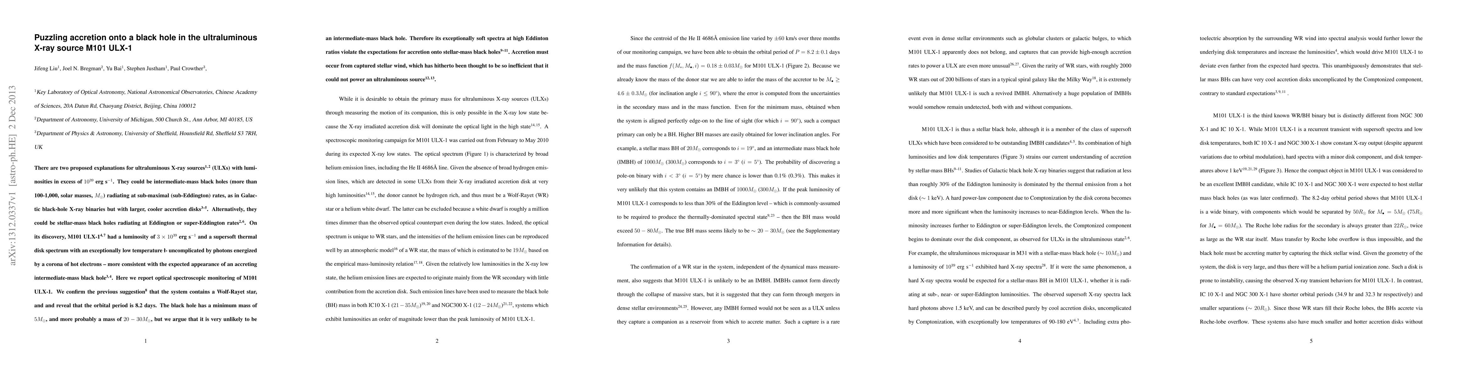 There are two proposed explanations for ultraluminous X-ray sources (ULXs) with luminosities in excess of $10^{39}$ erg s$^{-1}$. They could be intermediate-mass black holes (more than 100-1,000, solar masses, $M_\odot$) radiating at sub-maximal (sub-Eddington) rates, as in Galactic black-hole X-ray binaries but with larger, cooler accretion disks. Alternatively, they could be stellar-mass black holes radiating at Eddington or super-Eddington rates. On its discovery, M101 ULX-1 had a luminosity of $3\times10^{39}$ erg s$^{-1}$ and a supersoft thermal disk spectrum with an exceptionally low temperature -- uncomplicated by photons energized by a corona of hot electrons -- more consistent with the expected appearance of an accreting intermediate-mass black hole. Here we report optical spectroscopic monitoring of M101 ULX-1. We confirm the previous suggestion that the system contains a Wolf-Rayet star, and reveal that the orbital period is 8.2 days. The black hole has a minimum mass of $5M_\odot$, and more probably a mass of $20-30M_\odot$, but we argue that it is very unlikely to be an intermediate-mass black hole. Therefore its exceptionally soft spectra at high Eddinton ratios violate the expectations for accretion onto stellar-mass black holes. Accretion must occur from captured stellar wind, which has hitherto been thought to be so inefficient that it could not power an ultraluminous source.