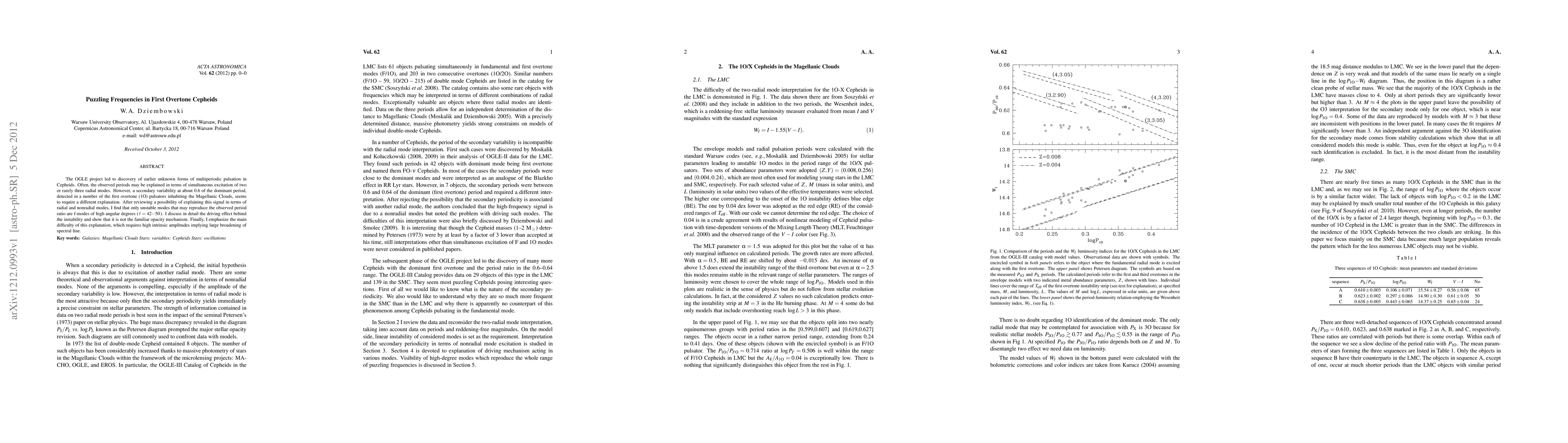 The OGLE project led to discovery of earlier unknown forms of multiperiodic pulsation in Cepheids. Often, the observed periods may be explained in terms of simultaneous excitation of two or rarely three radial modes. However, a secondary variability at about 0.6 of the dominant period, detected in a number of the first overtone (1O) pulsators inhabiting the Magellanic Clouds, seems to require a different explanation. After reviewing a possibility of explaining this signal in terms of radial and nonradial modes, I find that only unstable modes that may reproduce the observed period ratio are f-modes of high angular degrees (l=42-50). I discuss in detail the driving effect behind the instability and show that it is not the familiar opacity mechanism. Finally, I emphasize the main difficulty of this explanation, which requires high intrinsic amplitudes implying large broadening of spectral line.
