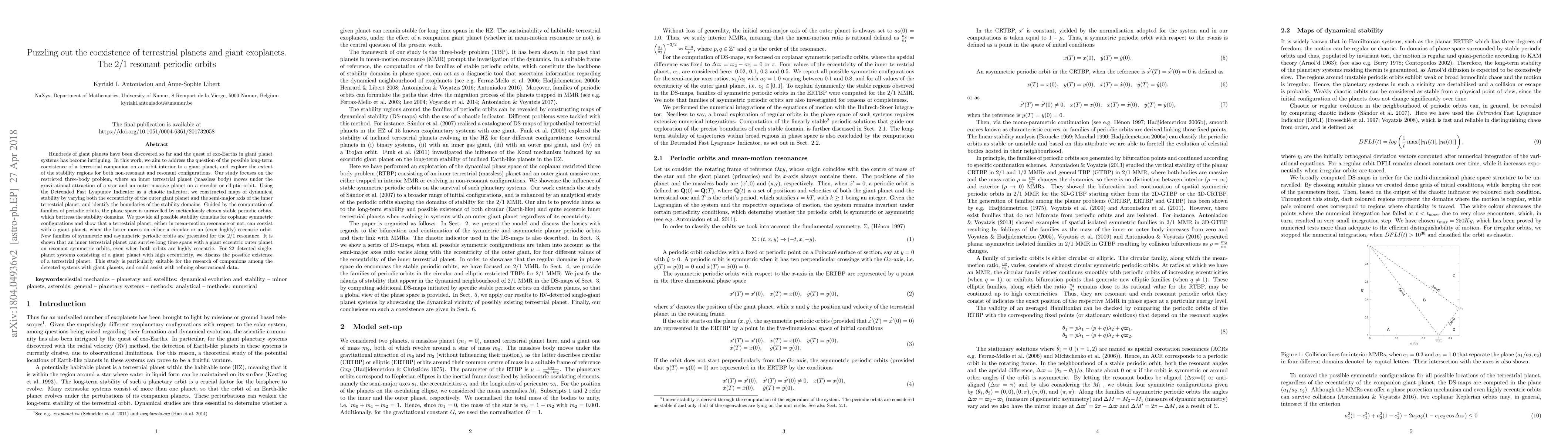 Hundreds of giant planets have been discovered so far and the quest of exo-Earths in giant planet systems has become intriguing. In this work, we aim to address the question of the possible long-term coexistence of a terrestrial companion on an orbit interior to a giant planet, and explore the extent of the stability regions for both non-resonant and resonant configurations. Our study focuses on the restricted three-body problem, where an inner terrestrial planet (massless body) moves under the gravitational attraction of a star and an outer massive planet on a circular or elliptic orbit. Using the Detrended Fast Lyapunov Indicator as a chaotic indicator, we constructed maps of dynamical stability by varying both the eccentricity of the outer giant planet and the semi-major axis of the inner terrestrial planet, and identify the boundaries of the stability domains. Guided by the computation of families of periodic orbits, the phase space is unravelled by meticulously chosen stable periodic orbits, which buttress the stability domains. We provide all possible stability domains for coplanar symmetric configurations and show that a terrestrial planet, either in mean-motion resonance or not, can coexist with a giant planet, when the latter moves on either a circular or an (even highly) eccentric orbit. New families of symmetric and asymmetric periodic orbits are presented for the 2/1 resonance. It is shown that an inner terrestrial planet can survive long time spans with a giant eccentric outer planet on resonant symmetric orbits, even when both orbits are highly eccentric. For 22 detected single-planet systems consisting of a giant planet with high eccentricity, we discuss the possible existence of a terrestrial planet. This study is particularly suitable for the research of companions among the detected systems with giant planets, and could assist with refining observational data.