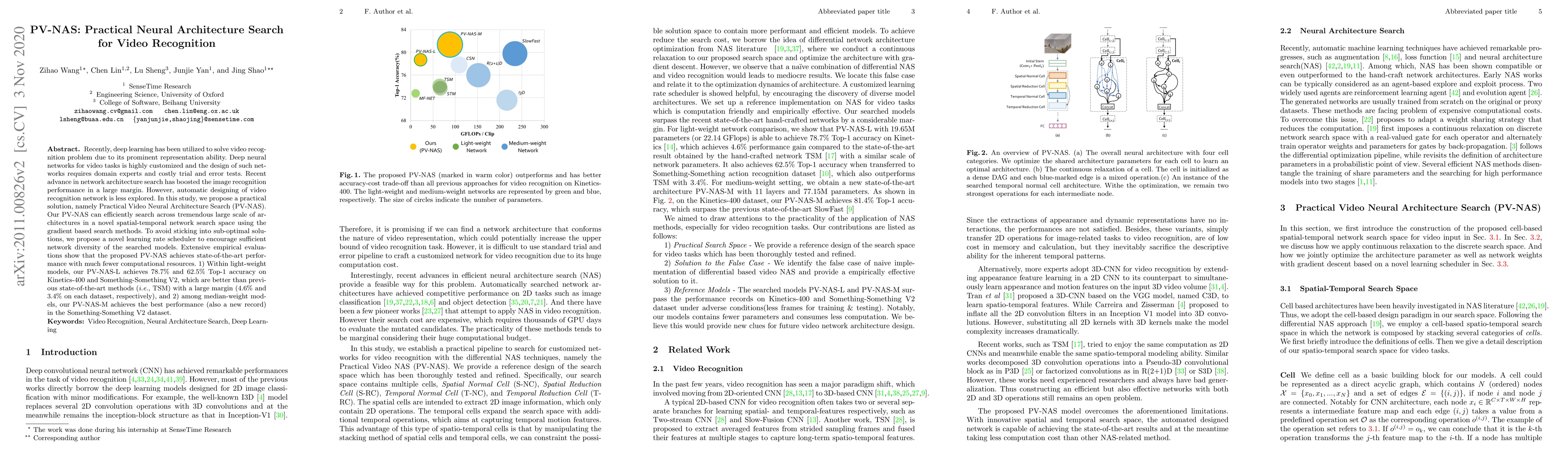 Recently, deep learning has been utilized to solve video recognition problem due to its prominent representation ability. Deep neural networks for video tasks is highly customized and the design of such networks requires domain experts and costly trial and error tests. Recent advance in network architecture search has boosted the image recognition performance in a large margin. However, automatic designing of video recognition network is less explored. In this study, we propose a practical solution, namely Practical Video Neural Architecture Search (PV-NAS).Our PV-NAS can efficiently search across tremendous large scale of architectures in a novel spatial-temporal network search space using the gradient based search methods. To avoid sticking into sub-optimal solutions, we propose a novel learning rate scheduler to encourage sufficient network diversity of the searched models. Extensive empirical evaluations show that the proposed PV-NAS achieves state-of-the-art performance with much fewer computational resources. 1) Within light-weight models, our PV-NAS-L achieves 78.7% and 62.5% Top-1 accuracy on Kinetics-400 and Something-Something V2, which are better than previous state-of-the-art methods (i.e., TSM) with a large margin (4.6% and 3.4% on each dataset, respectively), and 2) among median-weight models, our PV-NAS-M achieves the best performance (also a new record)in the Something-Something V2 dataset.
