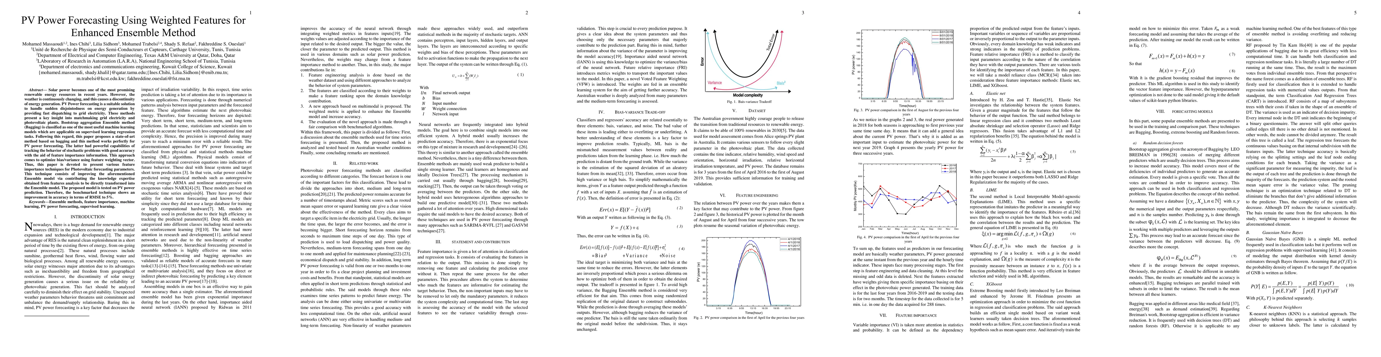 This paper proposes an advanced ensemble method using bootstrap aggregation (Bagging) for PV power forecasting, incorporating weighted features to enhance accuracy. The model demonstrates a 5% improvement in RMSE, showcasing its effectiveness in handling the stochastic nature of solar power generation.
