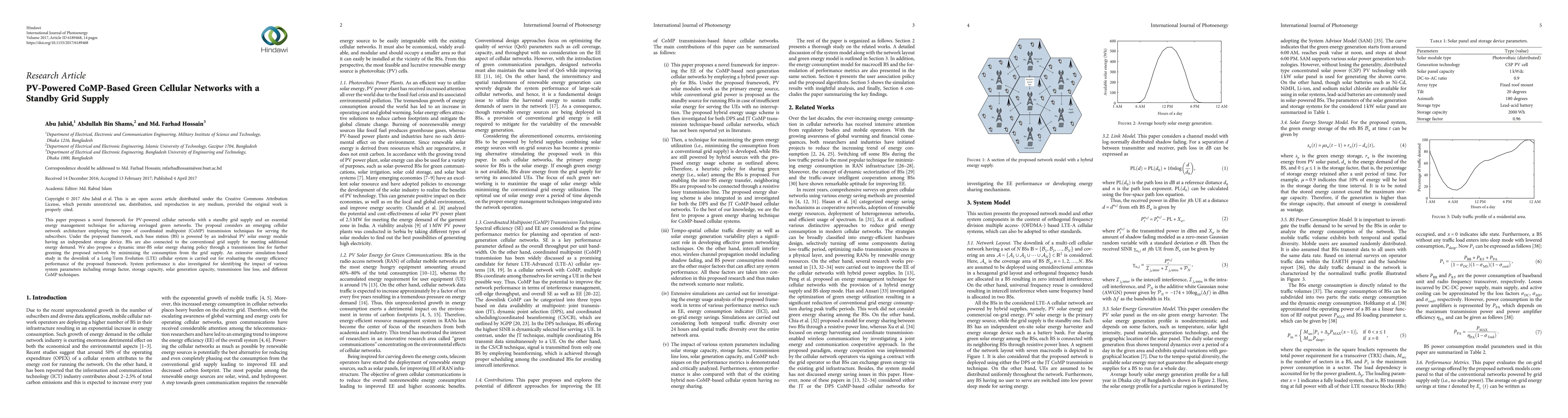 This paper introduces a PV-powered cellular network framework utilizing coordinated multipoint transmission techniques and a standby grid for energy supply, along with a dynamic inter-BS solar energy sharing policy to enhance green energy efficiency. Simulation results assess the impact of various system parameters on the network's energy efficiency.