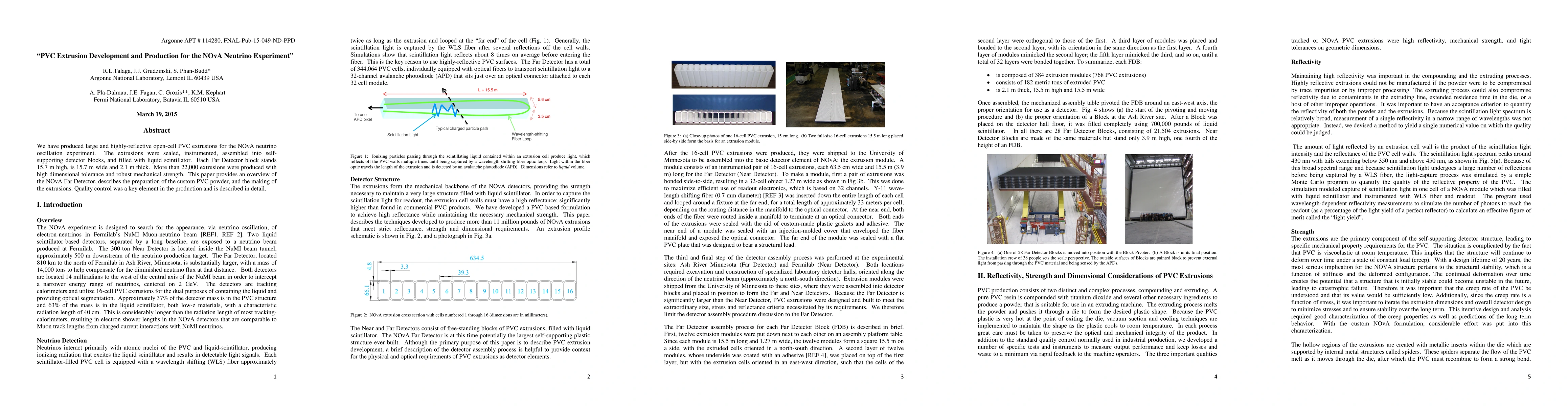 This paper details the production of large, reflective PVC extrusions for the NOvA neutrino experiment, emphasizing high dimensional tolerance and robust mechanical strength. The process includes custom PVC powder preparation, extrusion manufacturing, and quality control, culminating in self-supporting detector blocks filled with liquid scintillator.