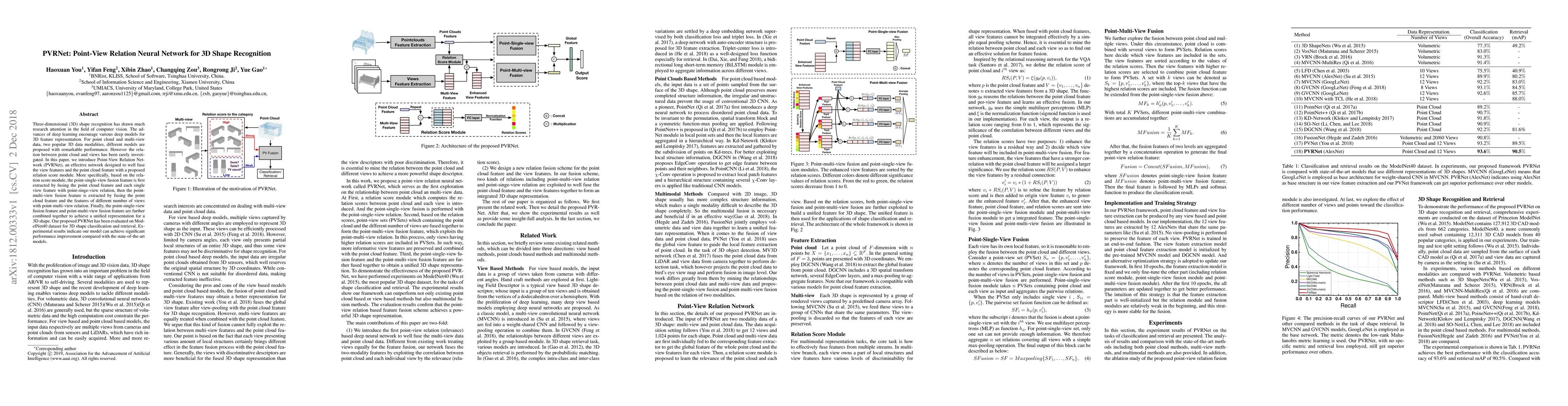 PVRNet introduces a novel neural network to enhance 3D shape recognition by fusing point cloud and multi-view features through a relation score module, achieving superior performance over state-of-the-art models on the ModelNet40 dataset. The network effectively combines single-view and multi-view fusion features to create a unified representation for 3D shapes.