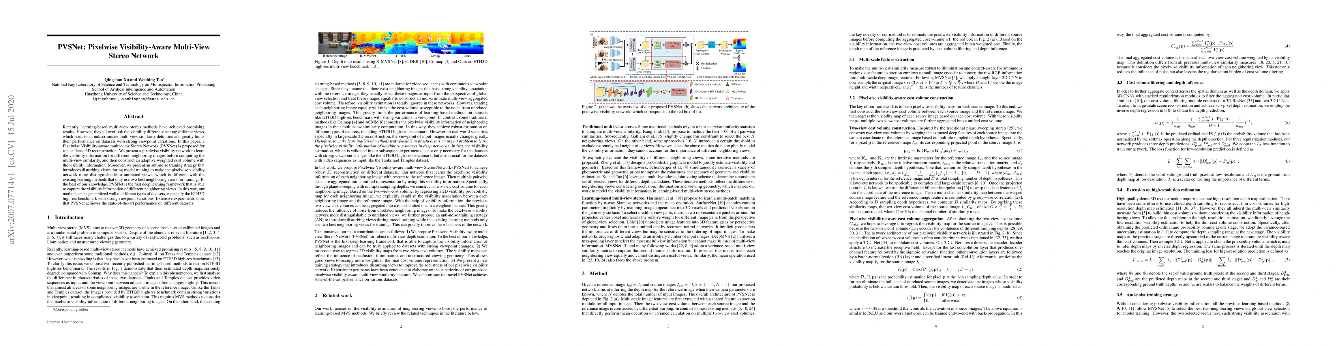 PVSNet: A deep learning framework that captures visibility information from neighboring views to achieve robust 3D reconstruction, outperforming existing methods on datasets with strong viewpoint variations.