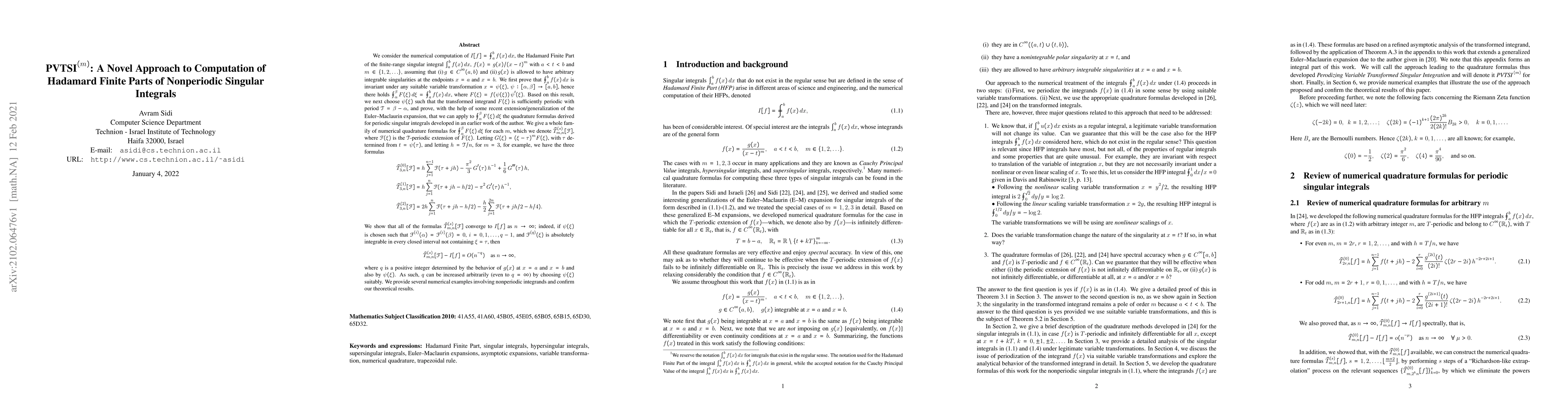 A novel approach is introduced to compute Hadamard finite parts of nonperiodic singular integrals, enabling efficient numerical integration using periodic quadrature formulas.