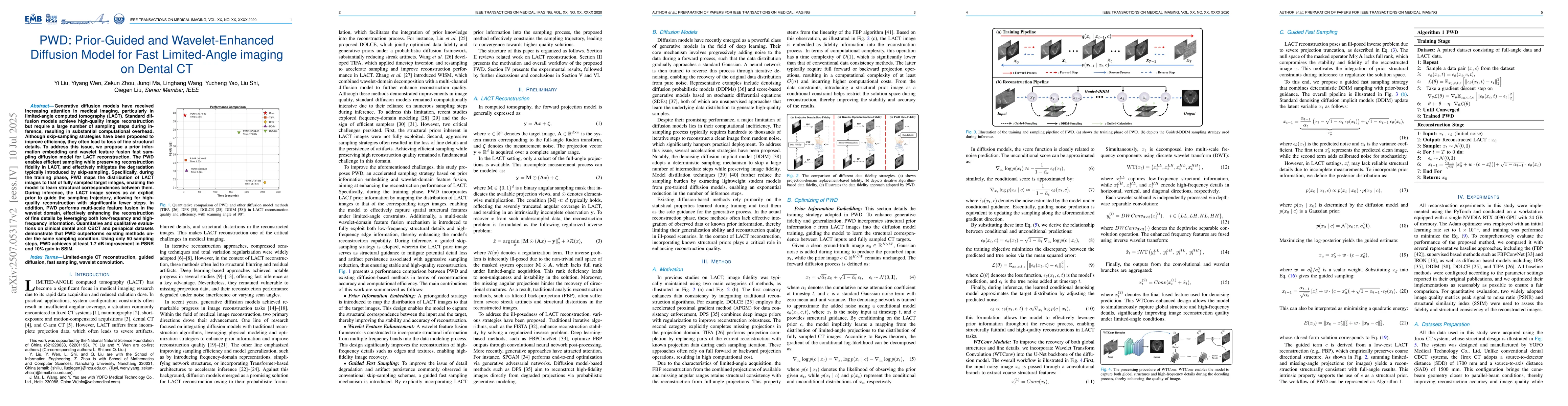 Generative diffusion models have received increasing attention in medical imaging, particularly in limited-angle computed tomography (LACT). Standard diffusion models achieve high-quality image reconstruction but require a large number of sampling steps during inference, resulting in substantial computational overhead. Although skip-sampling strategies have been proposed to improve efficiency, they often lead to loss of fine structural details. To address this issue, we propose a prior information embedding and wavelet feature fusion fast sampling diffusion model for LACT reconstruction. The PWD enables efficient sampling while preserving reconstruction fidelity in LACT, and effectively mitigates the degradation typically introduced by skip-sampling. Specifically, during the training phase, PWD maps the distribution of LACT images to that of fully sampled target images, enabling the model to learn structural correspondences between them. During inference, the LACT image serves as an explicit prior to guide the sampling trajectory, allowing for high-quality reconstruction with significantly fewer steps. In addition, PWD performs multi-scale feature fusion in the wavelet domain, effectively enhancing the reconstruction of fine details by leveraging both low-frequency and high-frequency information. Quantitative and qualitative evaluations on clinical dental arch CBCT and periapical datasets demonstrate that PWD outperforms existing methods under the same sampling condition. Using only 50 sampling steps, PWD achieves at least 1.7 dB improvement in PSNR and 10% gain in SSIM.