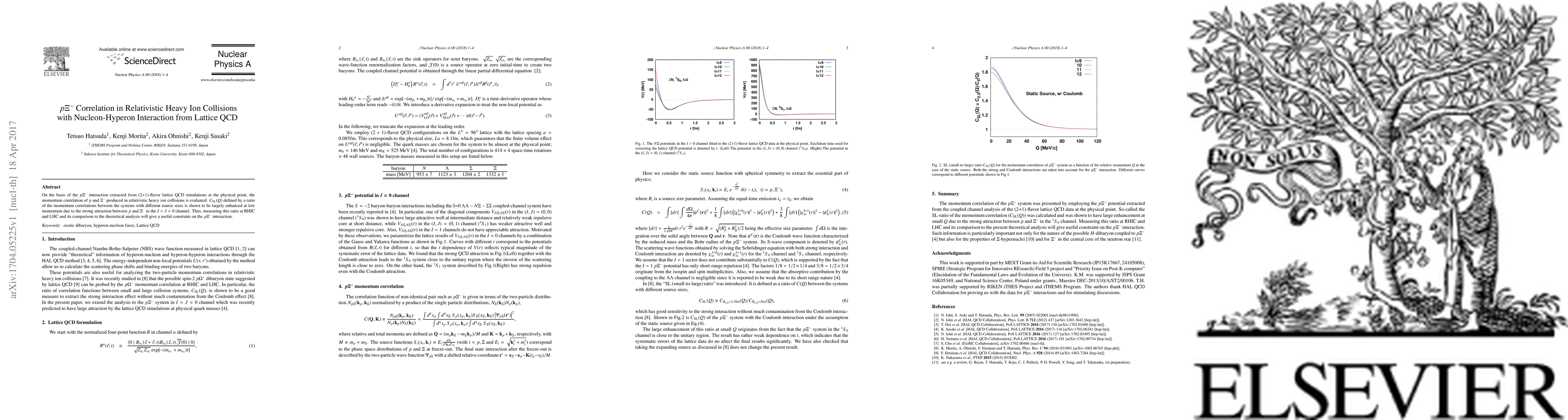 On the basis of the $p\Xi^-$ interaction extracted from (2+1)-flavor lattice QCD simulations at the physical point, the momentum correlation of $p$ and $\Xi^-$ produced in relativistic heavy ion collisions is evaluated. $C_{\rm SL}(Q)$ defined by a ratio of the momentum correlations between the systems with different source sizes is shown to be largely enhanced at low momentum due to the strong attraction between $p$ and $\Xi^-$ in the $I=J=0$ channel. Thus, measuring this ratio at RHIC and LHC and its comparison to the theoretical analysis will give a useful constraint on the $p\Xi^-$ interaction.