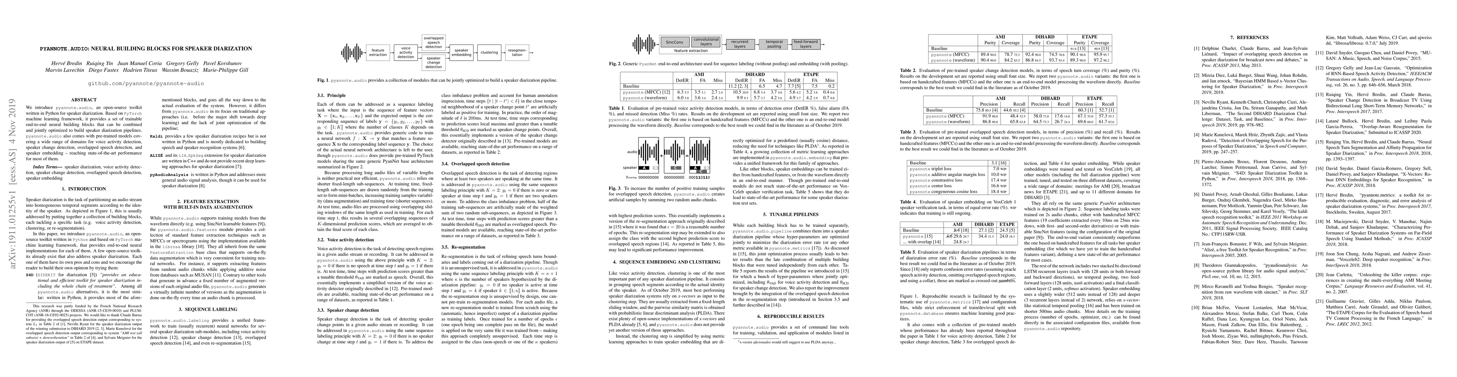 pyannote.audio is an open-source Python toolkit for speaker diarization, utilizing PyTorch for neural building blocks that enable end-to-end optimization. It offers pre-trained models achieving state-of-the-art results in voice activity, speaker change, and overlapped speech detection.