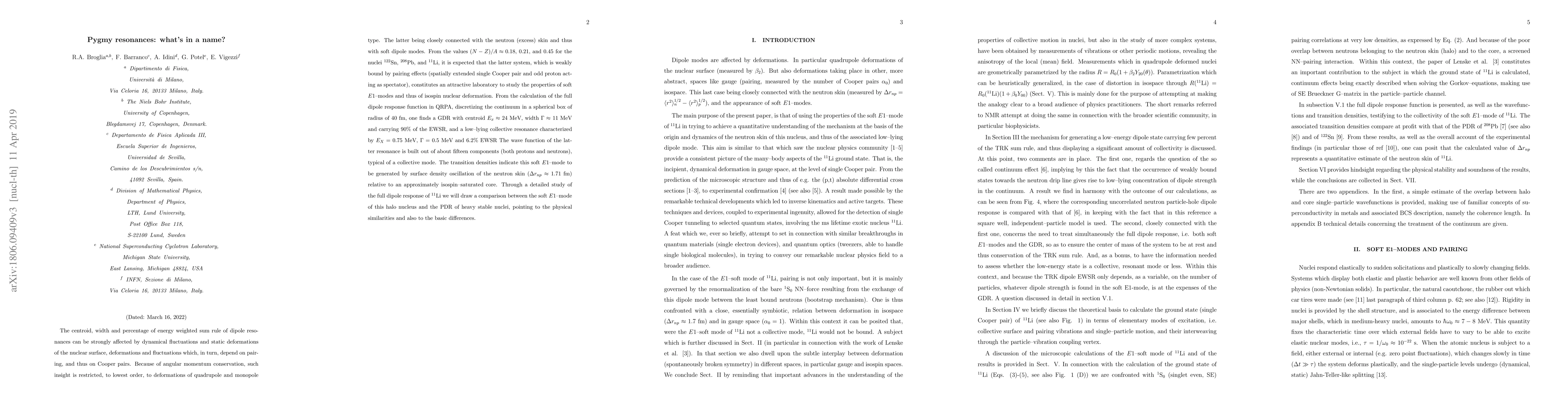 The centroid, width and percentage of energy weighted sum rule of dipole resonances can be strongly affected by dynamical fluctuations and static deformations of the nuclear surface, deformations and fluctuations which, in turn, depend on pairing, and thus on Cooper pairs. Because of angular momentum conservation, such insight is restricted, to lowest order, to deformations of quadrupole and monopole type. The latter being closely connected with the neutron (excess) skin and thus with soft dipole modes. From the values $(N-Z)/A \approx 0.18$, 0.21, and 0.45 for the nuclei $^{122}$Sn, $^{208}$Pb, and $^{11}$Li, it is expected that the latter system, which is weakly bound by pairing effects (spatially extended single Cooper pair and odd proton acting as spectator), constitutes an attractive laboratory to study the properties of soft $E1$--modes and thus of isospin nuclear deformation. From the calculation of the full dipole response function in QRPA, discretizing the continuum in a spherical box of radius of 40 fm, one finds a GDR with centroid $E_x \approx 24$ MeV, width $\Gamma \approx$ 11 MeV and carrying 90\% of the EWSR, and a low--lying collective resonance characterized by $E_X = 0.75$ MeV, $\Gamma = 0.5$ MeV and $6.2\%$ EWSR The wave function of the latter resonance is built out of about fifteen components (both protons and neutrons), typical of a collective mode. The transition densities indicate this soft $E1$--mode to be generated by surface density oscillation of the neutron skin ($\Delta r_{np} \approx 1.71$ fm) relative to an approximately isospin--saturated core. Through a detailed study of the full dipole response of $^{11}$Li we will draw a comparison between the soft $E1$--mode of this halo nucleus and the PDR of heavy stable nuclei, pointing to the physical similarities and also to the basic differences.