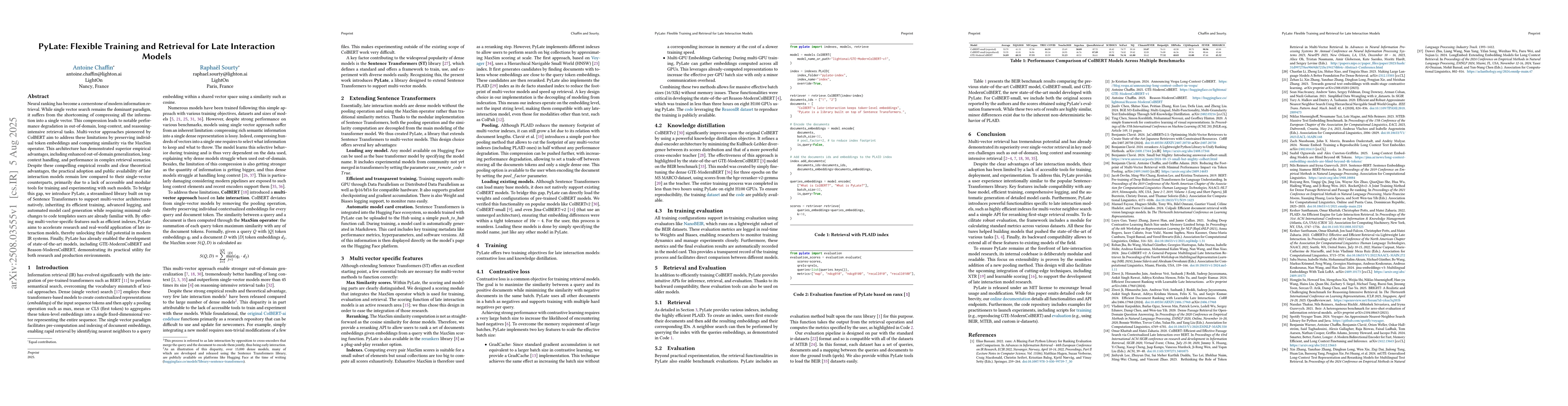 Neural ranking has become a cornerstone of modern information retrieval. While single vector search remains the dominant paradigm, it suffers from the shortcoming of compressing all the information into a single vector. This compression leads to notable performance degradation in out-of-domain, long-context, and reasoning-intensive retrieval tasks. Multi-vector approaches pioneered by ColBERT aim to address these limitations by preserving individual token embeddings and computing similarity via the MaxSim operator. This architecture has demonstrated superior empirical advantages, including enhanced out-of-domain generalization, long-context handling, and performance in complex retrieval scenarios. Despite these compelling empirical results and clear theoretical advantages, the practical adoption and public availability of late interaction models remain low compared to their single-vector counterparts, primarily due to a lack of accessible and modular tools for training and experimenting with such models. To bridge this gap, we introduce PyLate, a streamlined library built on top of Sentence Transformers to support multi-vector architectures natively, inheriting its efficient training, advanced logging, and automated model card generation while requiring minimal code changes to code templates users are already familiar with. By offering multi-vector-specific features such as efficient indexes, PyLate aims to accelerate research and real-world application of late interaction models, thereby unlocking their full potential in modern IR systems. Finally, PyLate has already enabled the development of state-of-the-art models, including GTE-ModernColBERT and Reason-ModernColBERT, demonstrating its practical utility for both research and production environments.