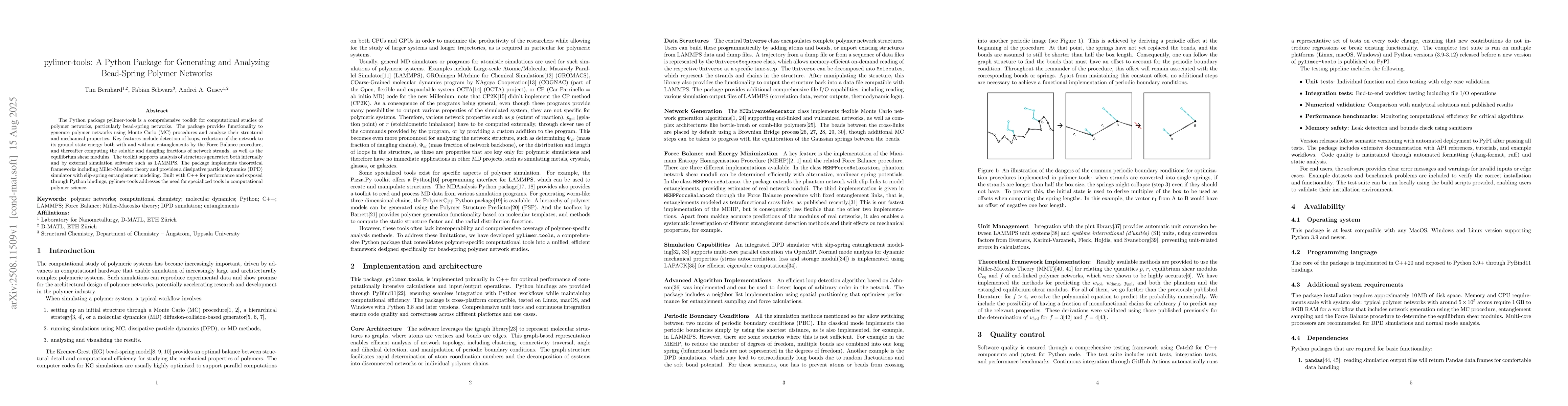 The Python package pylimer-tools is a comprehensive toolkit for computational studies of polymer networks, particularly bead-spring networks. The package provides functionality to generate polymer networks using Monte Carlo (MC) procedures and analyze their structural and mechanical properties. Key features include detection of loops, reduction of the network to its ground state energy both with and without entanglements by the Force Balance procedure, and thereafter computing the soluble and dangling fractions of network strands, as well as the equilibrium shear modulus. The toolkit supports analysis of structures generated both internally and by external simulation software such as LAMMPS. The package implements theoretical frameworks including Miller-Macosko theory and provides a dissipative particle dynamics (DPD) simulator with slip-spring entanglement modeling. Built with C++ for performance and exposed through Python bindings, pylimer-tools addresses the need for specialized tools in computational polymer science.