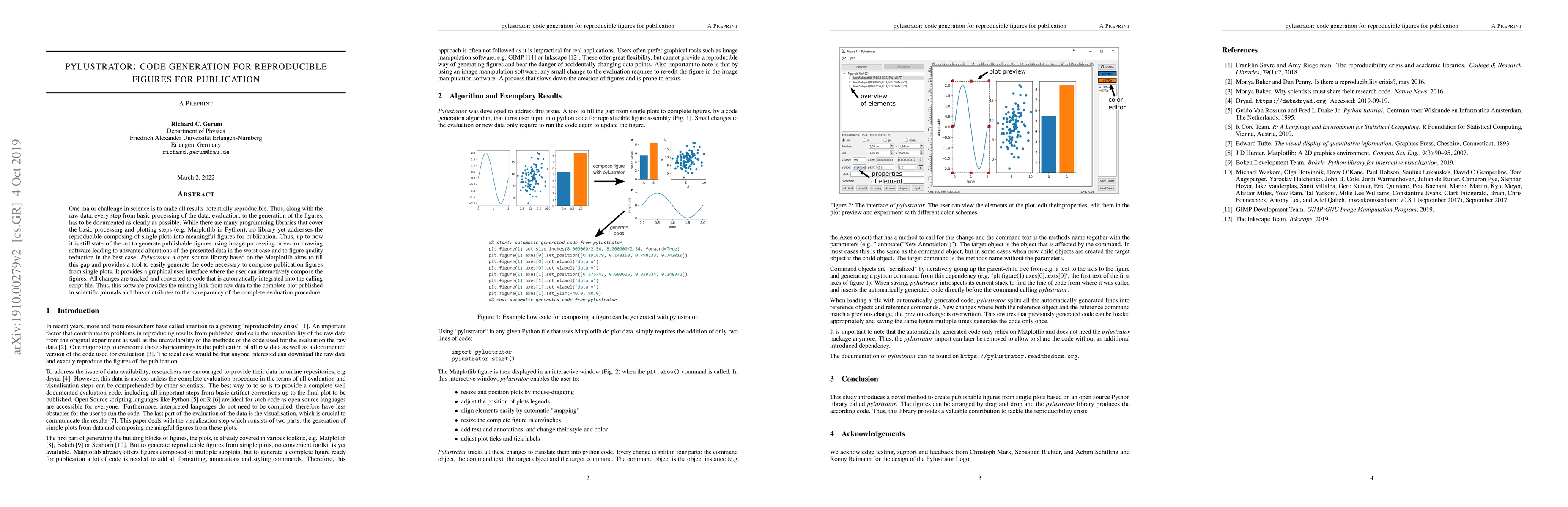 Pylustrator is an open-source library that generates code for reproducible figures in scientific publications, filling the gap between raw data and publication-ready plots.