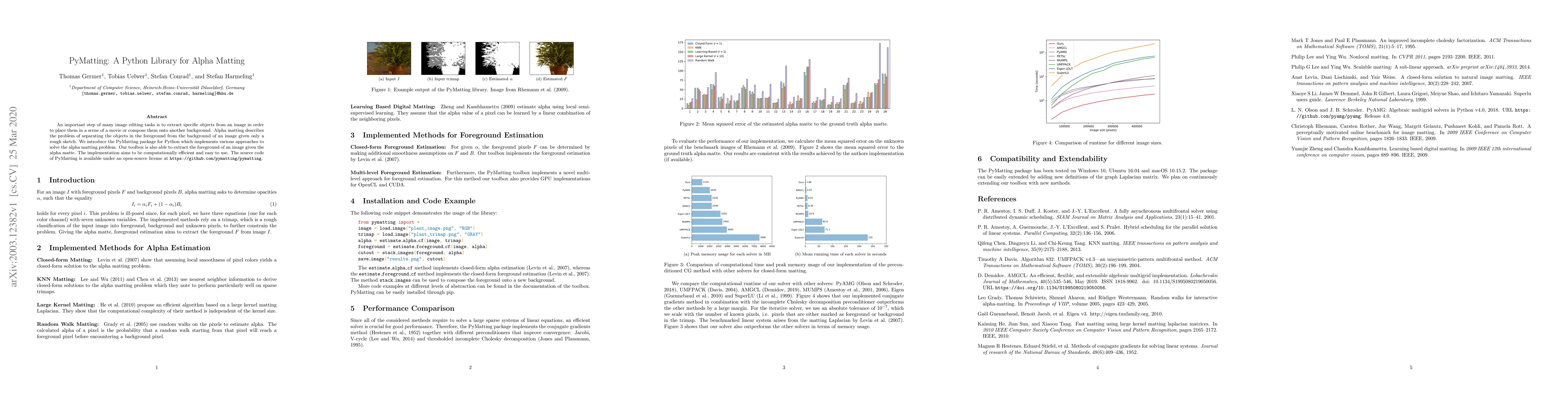 PyMatting is a Python library designed to solve the alpha matting problem, enabling the extraction of foreground objects from images using computational efficiency and ease of use. The open-source toolbox is available on GitHub for various image editing tasks.