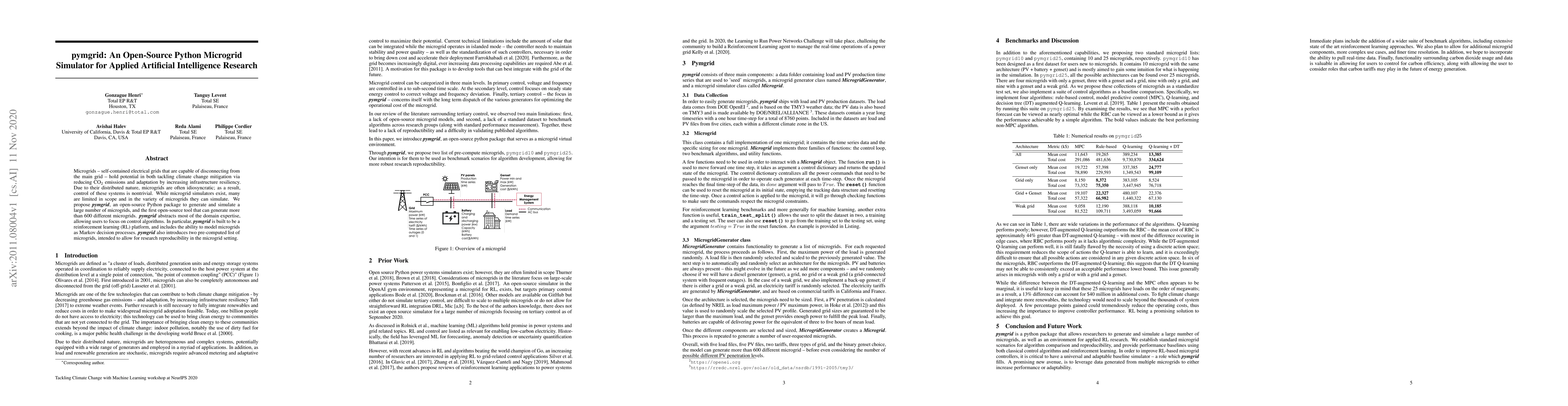 Microgrids, self contained electrical grids that are capable of disconnecting from the main grid, hold potential in both tackling climate change mitigation via reducing CO2 emissions and adaptation by increasing infrastructure resiliency. Due to their distributed nature, microgrids are often idiosyncratic; as a result, control of these systems is nontrivial. While microgrid simulators exist, many are limited in scope and in the variety of microgrids they can simulate. We propose pymgrid, an open-source Python package to generate and simulate a large number of microgrids, and the first open-source tool that can generate more than 600 different microgrids. pymgrid abstracts most of the domain expertise, allowing users to focus on control algorithms. In particular, pymgrid is built to be a reinforcement learning (RL) platform, and includes the ability to model microgrids as Markov decision processes. pymgrid also introduces two pre-computed list of microgrids, intended to allow for research reproducibility in the microgrid setting.