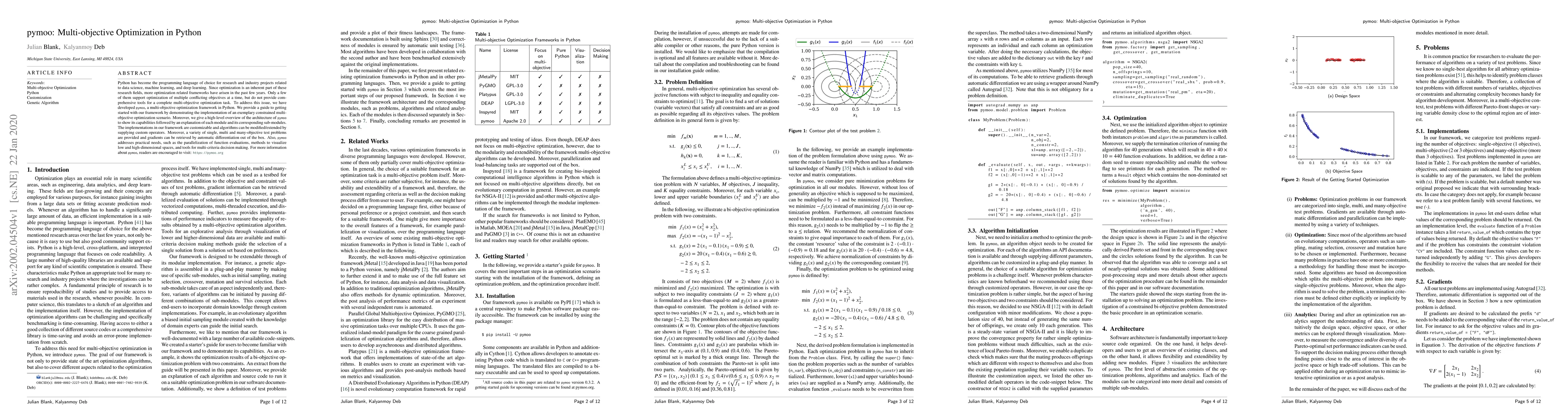 This paper introduces pymoo, a Python framework for multi-objective optimization, addressing the need for comprehensive tools in data science and machine learning.