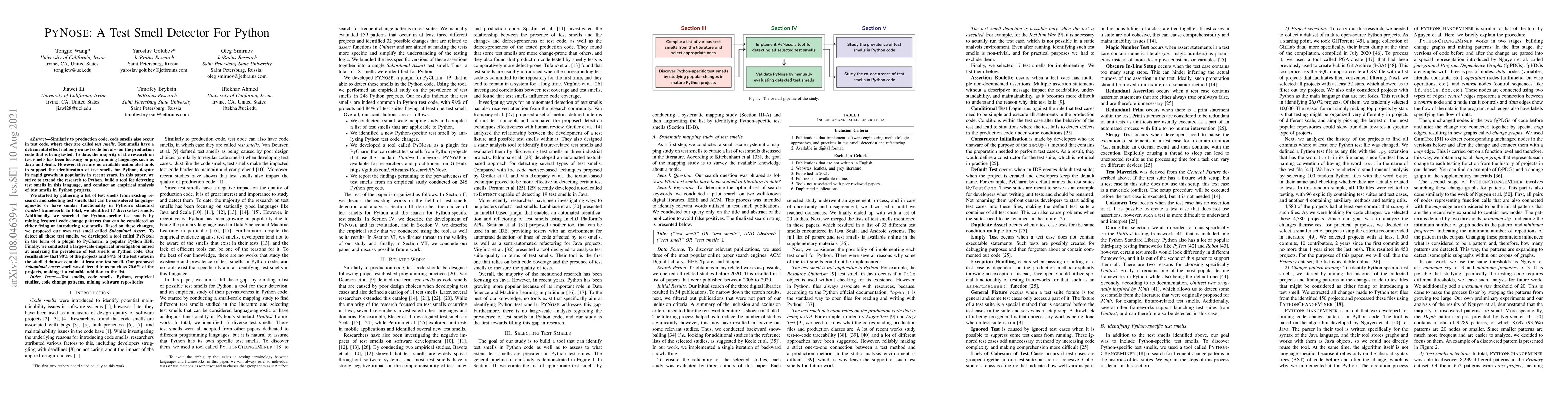 PyNose is a tool developed to detect test smells in Python, filling a gap in existing research that predominantly focuses on Java and Scala. The study identified 17 diverse test smells, including a Python-specific "Suboptimal assert," and found that 98% of examined projects and 84% of test suites contained at least one test smell.