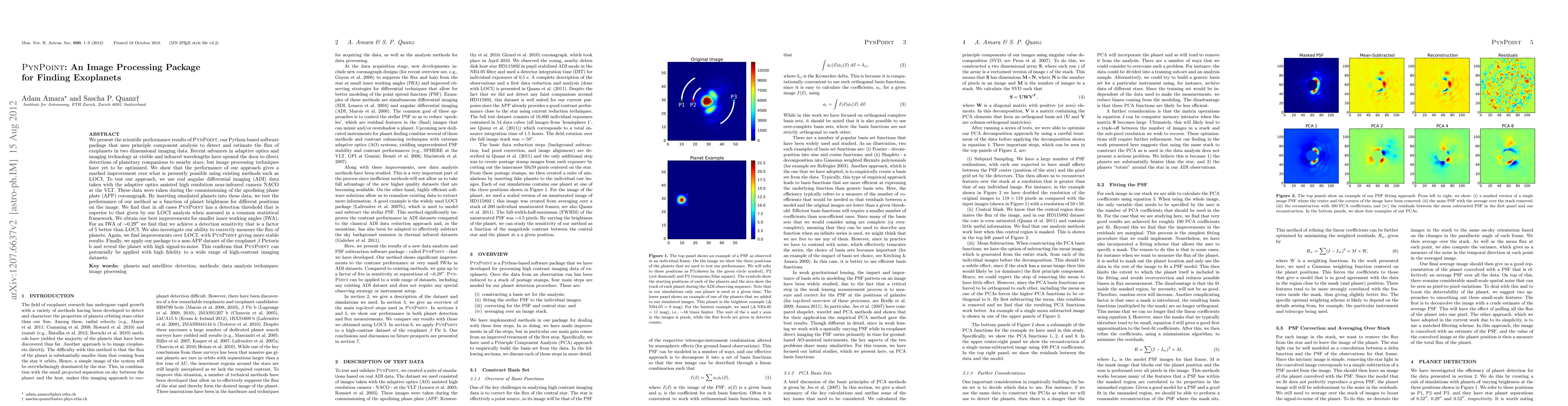 PynPoint, a Python-based image processing package, leverages principle component analysis to detect and estimate exoplanet flux in imaging data, demonstrating superior performance over existing methods like LOCI. It shows a detection threshold five times better for smaller inner working angles and more stable flux measurements.