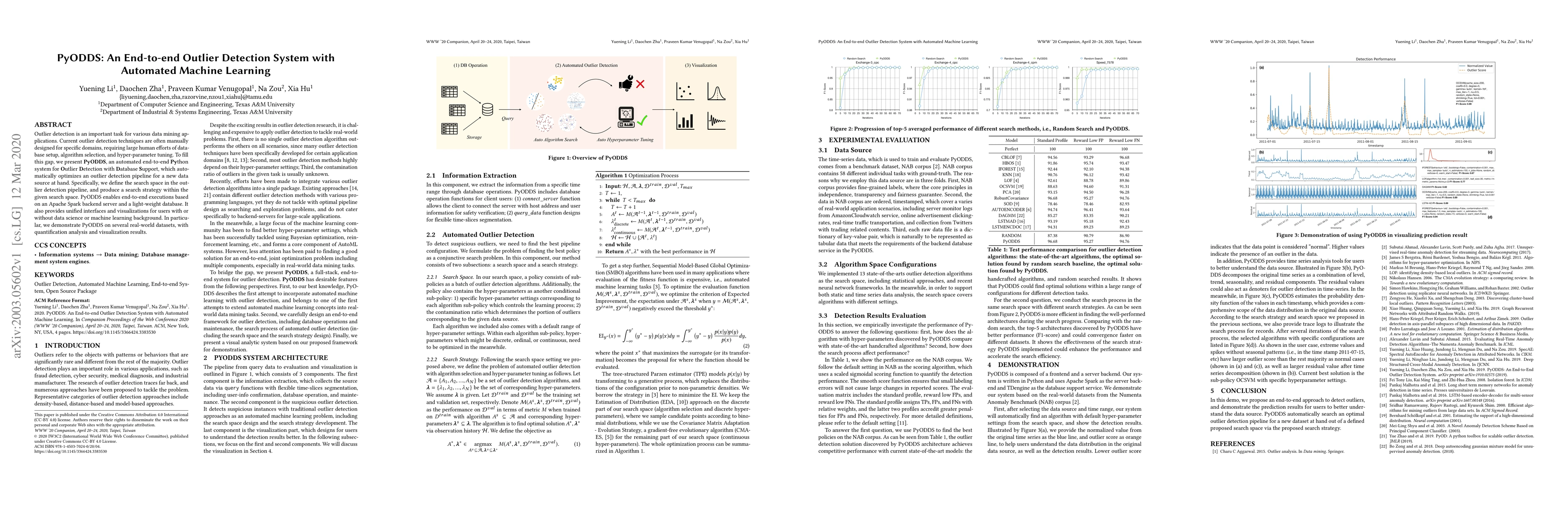 PyODDS automates the end-to-end outlier detection process, optimizing pipelines with minimal user intervention, leveraging Apache Spark and a light-weight database, and providing accessible interfaces for non-experts. It was tested on real-world datasets, demonstrating effective performance and visualization capabilities.