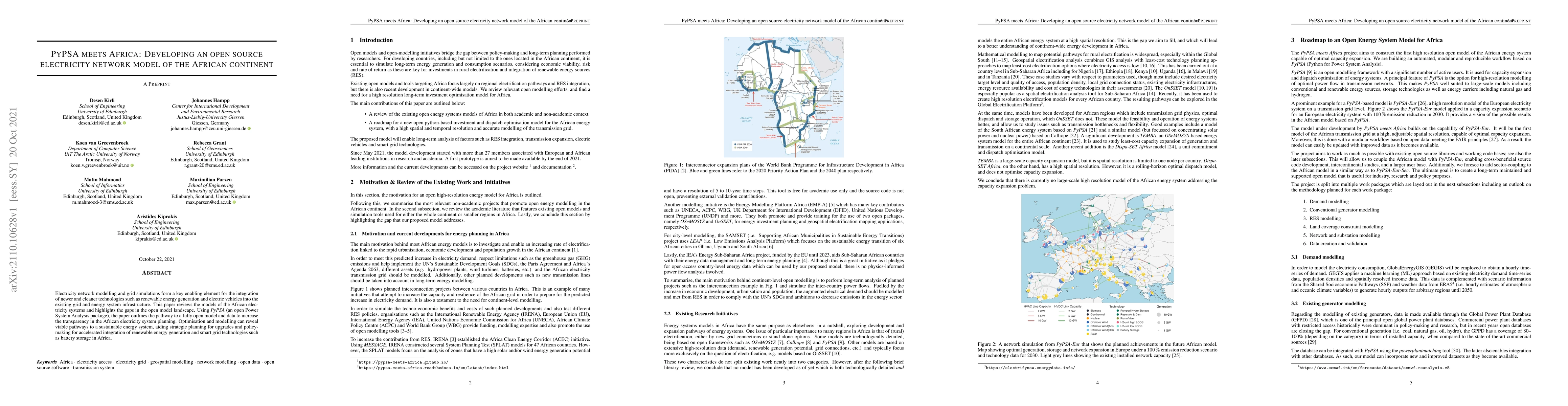 This paper utilizes PyPSA to develop an open-source electricity network model for Africa, aiming to enhance transparency and strategic planning in integrating renewable energy and smart grid technologies. It identifies gaps in existing models and proposes a pathway for sustainable energy system upgrades and policy-making.