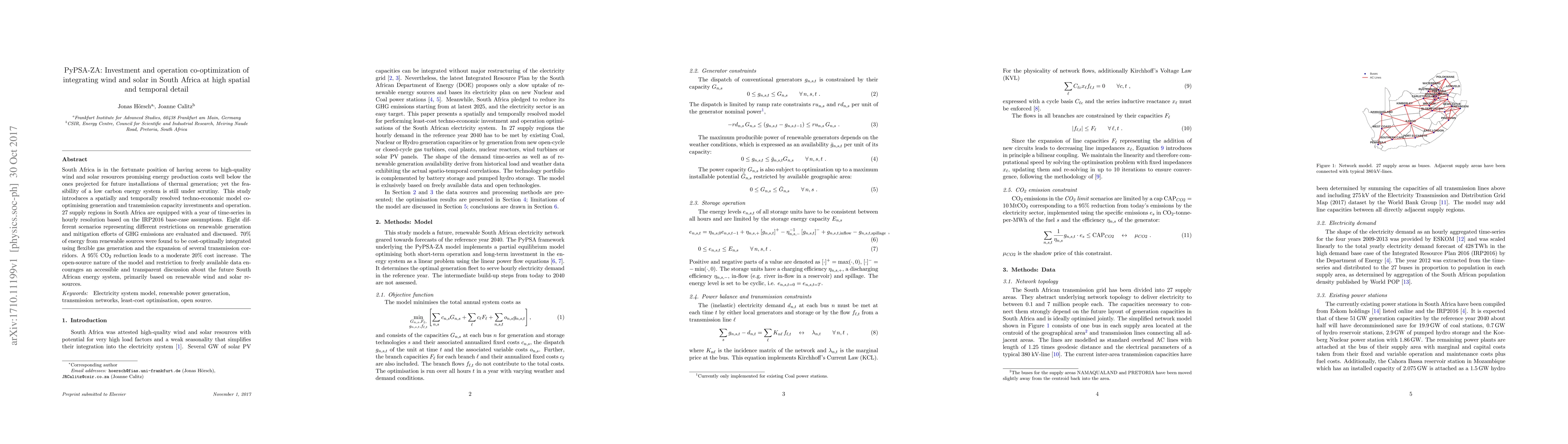 This study presents a detailed techno-economic model for optimizing the integration of wind and solar energy in South Africa, finding that 70% renewable energy integration is cost-effective with flexible gas generation and expanded transmission. A 95% CO₂ reduction results in a 20% cost increase, highlighting the potential for a low-carbon energy future based on renewables.