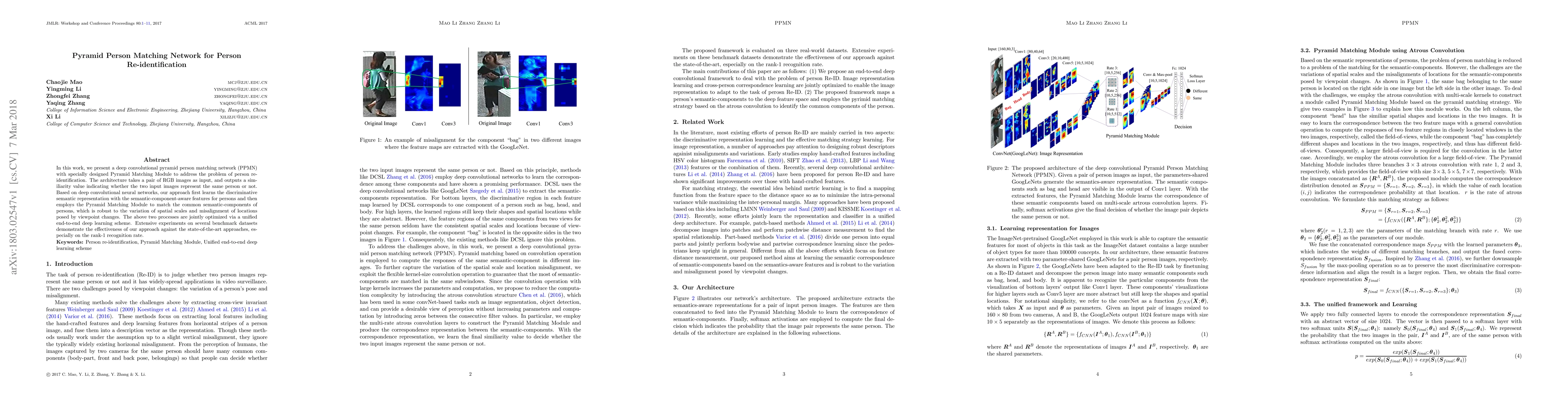 This paper introduces a deep convolutional Pyramid Person Matching Network (PPMN) with a specialized Pyramid Matching Module to enhance person re-identification. The network learns discriminative semantic representations and matches common semantic components robustly against scale and viewpoint variations, achieving superior rank-1 recognition rates on benchmark datasets.