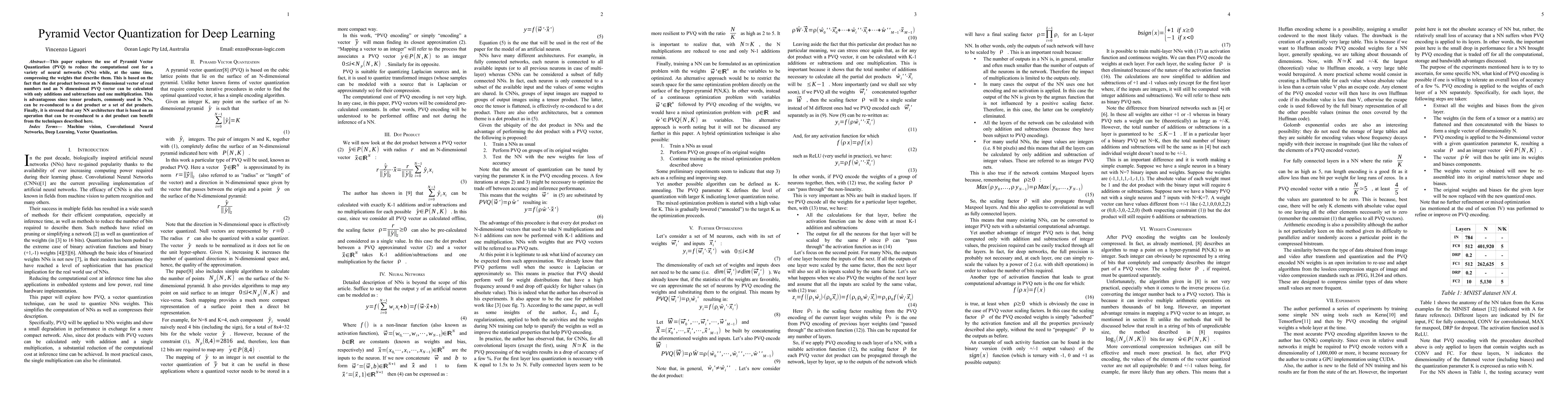 This paper introduces Pyramid Vector Quantization (PVQ) to reduce computational costs and compress neural network weights by performing dot product calculations with minimal operations. Any neural network architecture based on dot product operations can benefit from this approach.