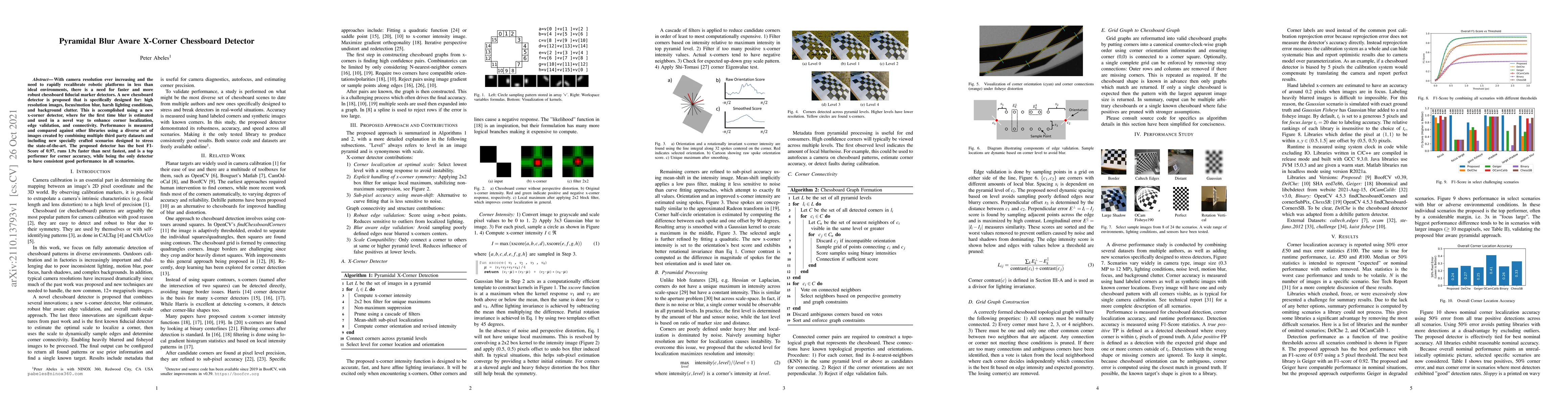 With camera resolution ever increasing and the need to rapidly recalibrate robotic platforms in less than ideal environments, there is a need for faster and more robust chessboard fiducial marker detectors. A new chessboard detector is proposed that is specifically designed for: high resolution images, focus/motion blur, harsh lighting conditions, and background clutter. This is accomplished using a new x-corner detector, where for the first time blur is estimated and used in a novel way to enhance corner localization, edge validation, and connectivity. Performance is measured and compared against other libraries using a diverse set of images created by combining multiple third party datasets and including new specially crafted scenarios designed to stress the state-of-the-art. The proposed detector has the best F1- Score of 0.97, runs 1.9x faster than next fastest, and is a top performer for corner accuracy, while being the only detector to have consistent good performance in all scenarios.