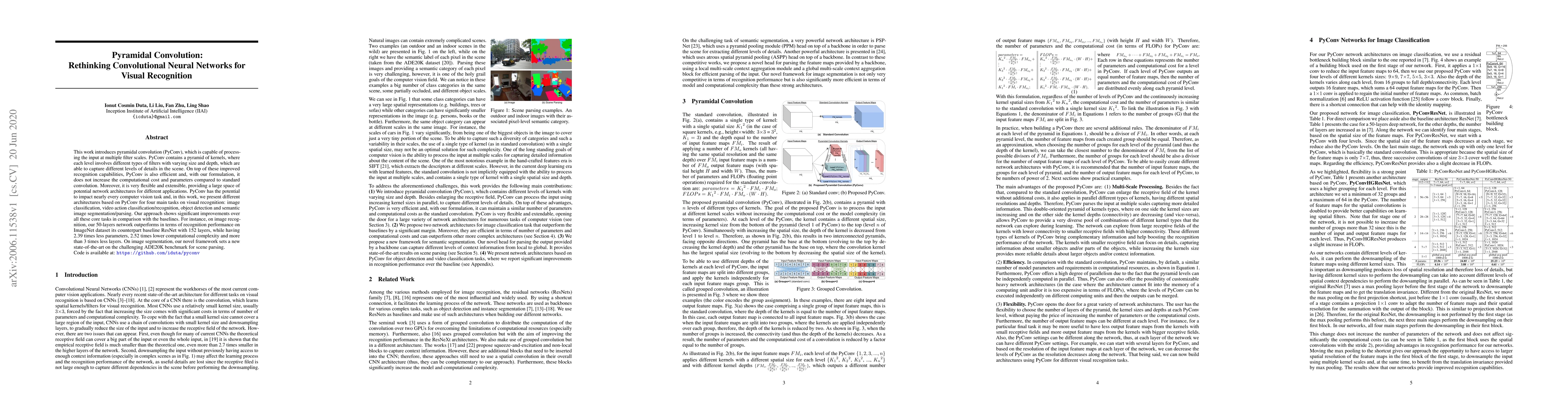 This paper introduces pyramidal convolution (PyConv), a novel approach that processes inputs at multiple filter scales using a pyramid of kernels, achieving improved recognition without increased computational cost. PyConv demonstrates significant performance gains across various visual recognition tasks, outperforming standard convolutional networks in terms of efficiency and accuracy.