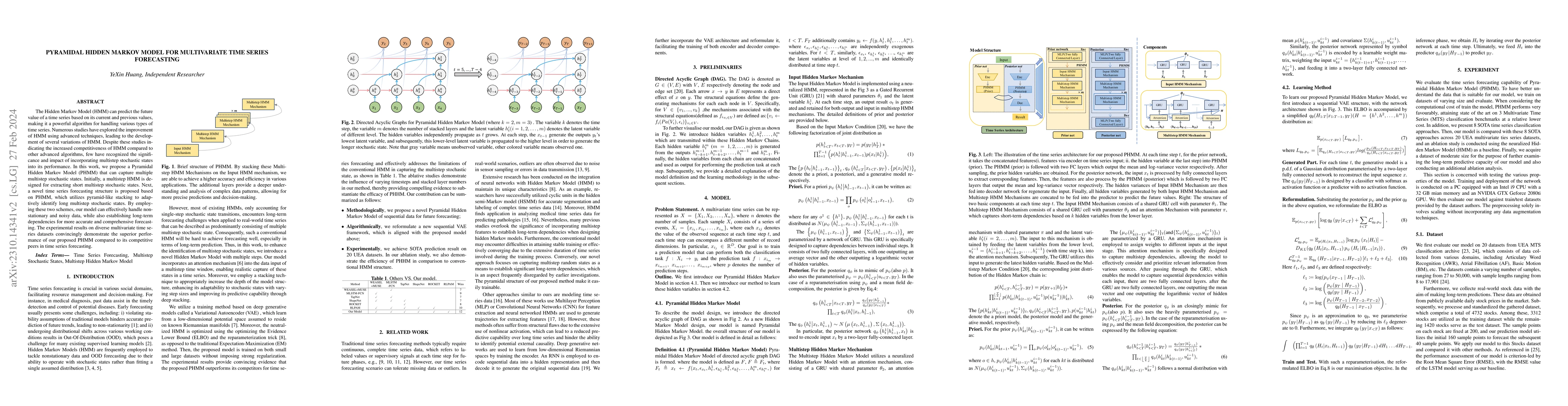 The Hidden Markov Model (HMM) can predict the future value of a time series based on its current and previous values, making it a powerful algorithm for handling various types of time series. Numerous studies have explored the improvement of HMM using advanced techniques, leading to the development of several variations of HMM. Despite these studies indicating the increased competitiveness of HMM compared to other advanced algorithms, few have recognized the significance and impact of incorporating multistep stochastic states into its performance. In this work, we propose a Pyramidal Hidden Markov Model (PHMM) that can capture multiple multistep stochastic states. Initially, a multistep HMM is designed for extracting short multistep stochastic states. Next, a novel time series forecasting structure is proposed based on PHMM, which utilizes pyramid-like stacking to adaptively identify long multistep stochastic states. By employing these two schemes, our model can effectively handle non-stationary and noisy data, while also establishing long-term dependencies for more accurate and comprehensive forecasting. The experimental results on diverse multivariate time series datasets convincingly demonstrate the superior performance of our proposed PHMM compared to its competitive peers in time series forecasting.
