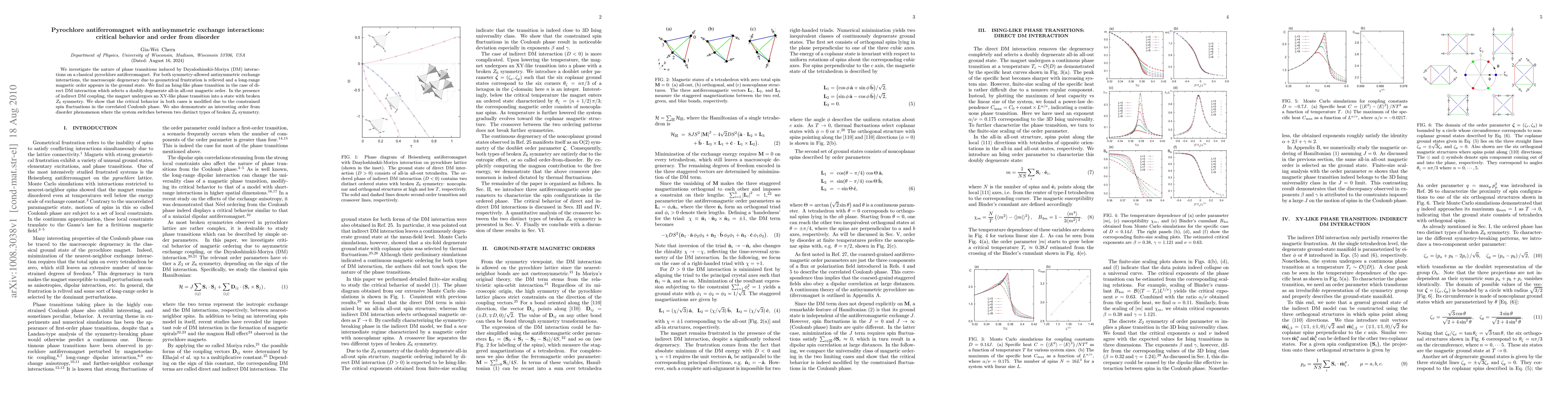 This paper explores phase transitions in a classical pyrochlore antiferromagnet driven by Dzyaloshinskii-Moriya interactions, leading to long-range magnetic order. It identifies Ising-like and XY-like transitions depending on direct or indirect DM coupling, and highlights an order from disorder effect that selects between two broken Z6 symmetry states.