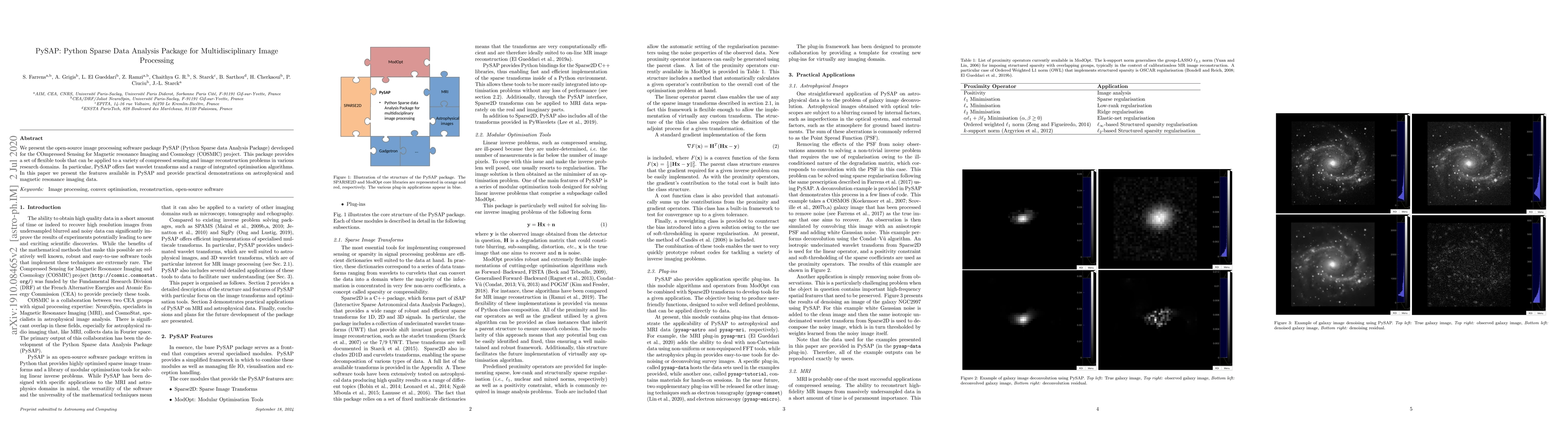 PySAP is an open-source Python package designed for sparse data analysis in multidisciplinary image processing, featuring fast wavelet transforms and optimization algorithms, demonstrated on astrophysical and MRI data within the COSMIC project.