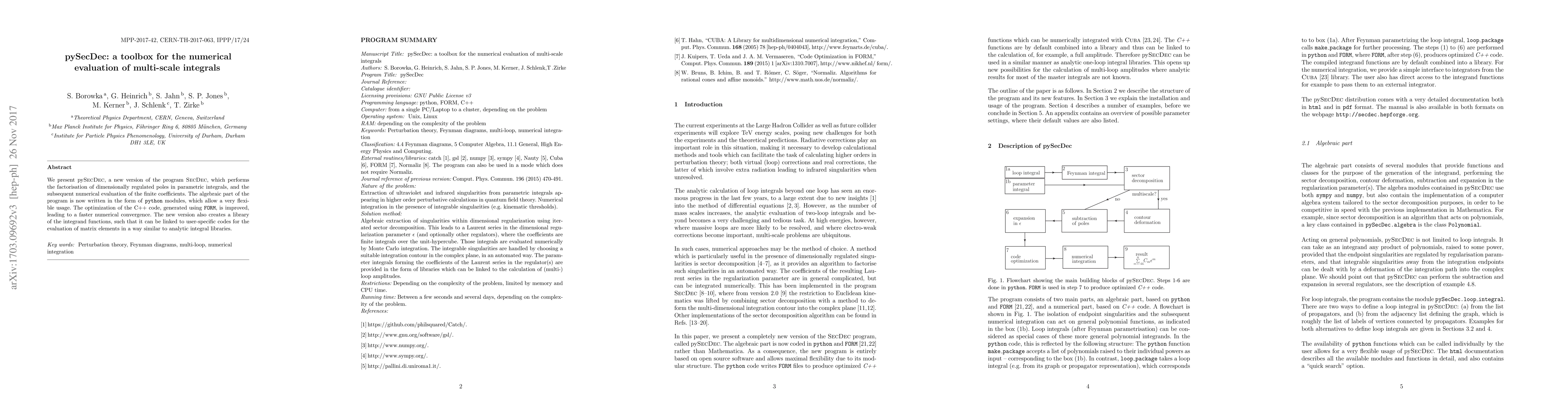 Summary: pySecDec is a new version of SecDec that factors dimensionally regulated poles in parametric integrals and evaluates finite coefficients numerically. The program's improved C++ code and Python modules enhance flexibility and convergence speed, and it now supports integration with user-specific codes.