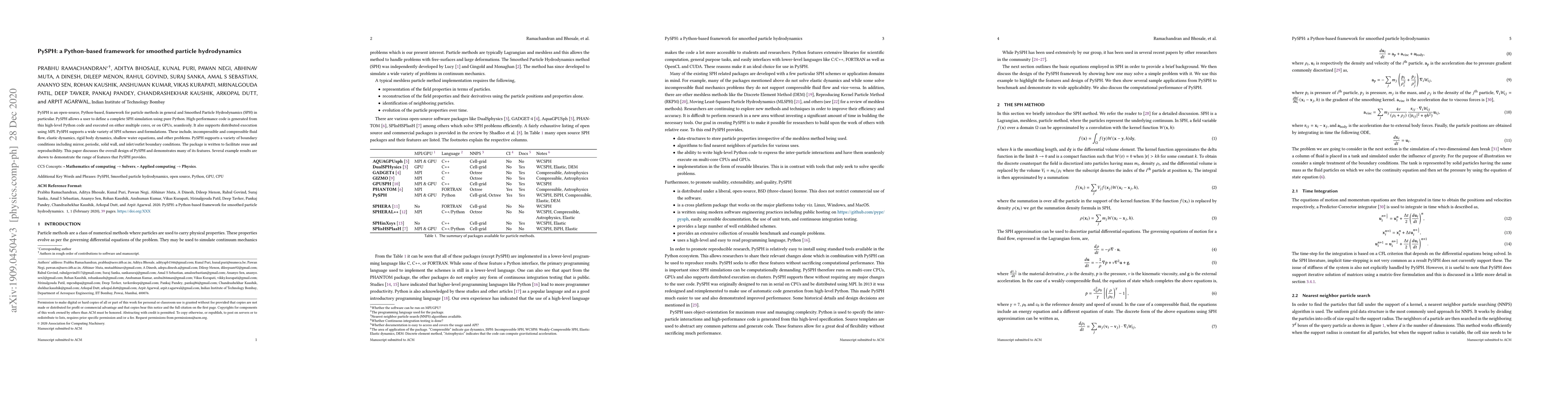 PySPH is an open-source Python-based framework for Smoothed Particle Hydrodynamics simulations, generating high-performance code from Python for execution on multiple cores, GPUs, or distributed systems. It supports a variety of fluid and dynamics simulations, boundary conditions, and aims for reuse and reproducibility.