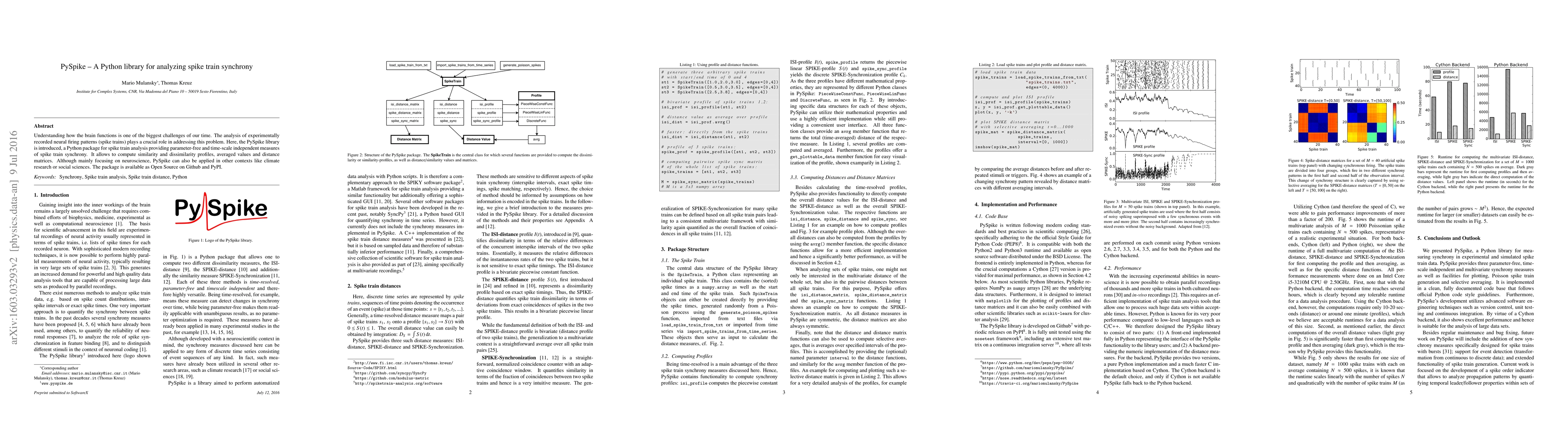 PySpike is a Python library for analyzing spike train synchrony, offering parameter-free measures that are time-scale independent. It computes similarity and dissimilarity profiles, and is applicable beyond neuroscience to fields like climate research and social sciences.