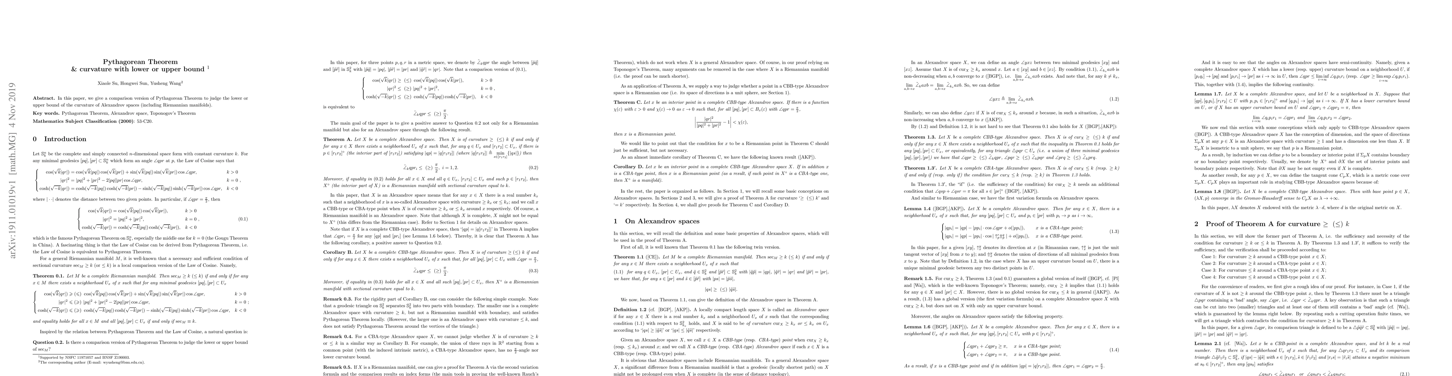 Summary: This paper presents a comparative version of the Pythagorean Theorem to assess the curvature bounds of Alexandrov spaces and Riemannian manifolds, providing insights into their geometric properties.