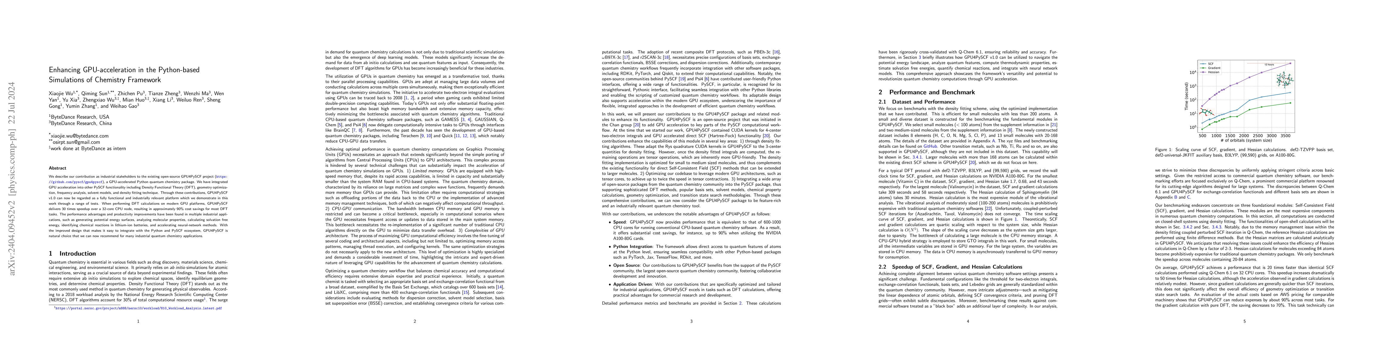 The research introduces GPU4PySCF, a GPU-accelerated Python package for quantum chemistry calculations, designed to be compatible with PySCF and enhancing performance for various tasks such as DFT calculations, solvation free energy, transition state search, and neural-network methods.