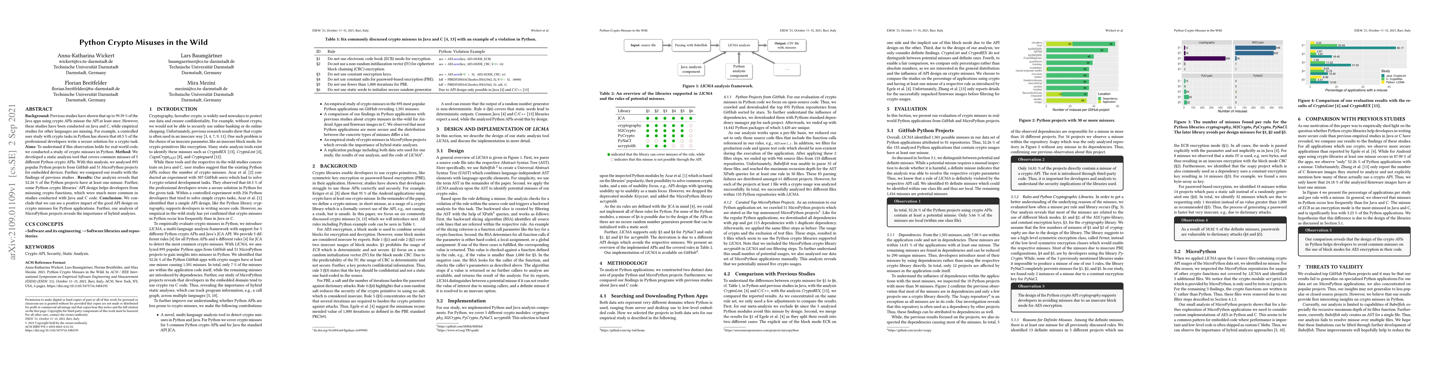 Background: Previous studies have shown that up to 99.59 % of the Java apps using crypto APIs misuse the API at least once. However, these studies have been conducted on Java and C, while empirical studies for other languages are missing. For example, a controlled user study with crypto tasks in Python has shown that 68.5 % of the professional developers write a secure solution for a crypto task. Aims: To understand if this observation holds for real-world code, we conducted a study of crypto misuses in Python. Method: We developed a static analysis tool that covers common misuses of 5 different Python crypto APIs. With this analysis, we analyzed 895 popular Python projects from GitHub and 51 MicroPython projects for embedded devices. Further, we compared our results with the findings of previous studies. Results: Our analysis reveals that 52.26 % of the Python projects have at least one misuse. Further, some Python crypto libraries API design helps developers from misusing crypto functions, which were much more common in studies conducted with Java and C code. Conclusion: We conclude that we can see a positive impact of the good API design on crypto misuses for Python applications. Further, our analysis of MicroPython projects reveals the importance of hybrid analyses.