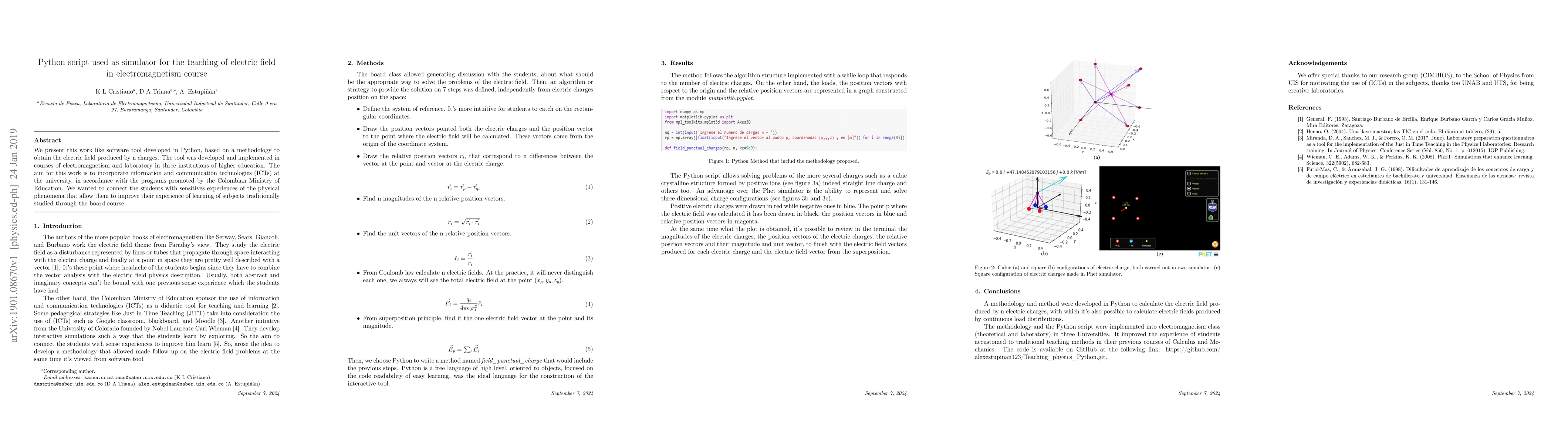 This paper introduces a Python-based simulator for teaching electric fields in electromagnetism courses. Implemented in three higher education institutions, it aims to enhance students' understanding of physical phenomena through interactive, ICT-integrated learning experiences.