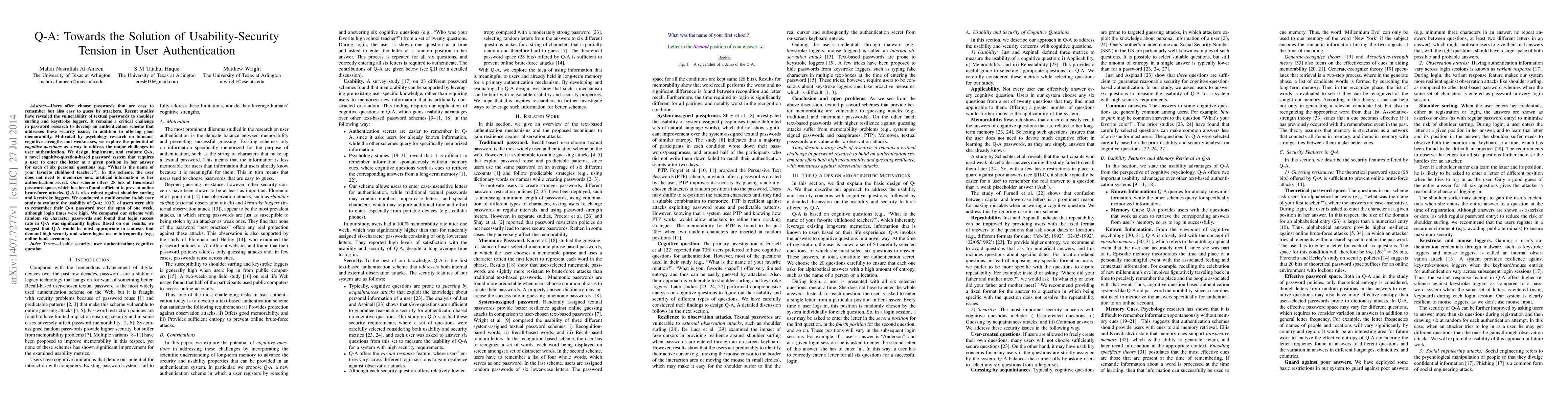 A new password system called Q-A uses personal questions to create a unique authentication method that balances security with memorability, showing promise in high-security contexts with infrequent logins.