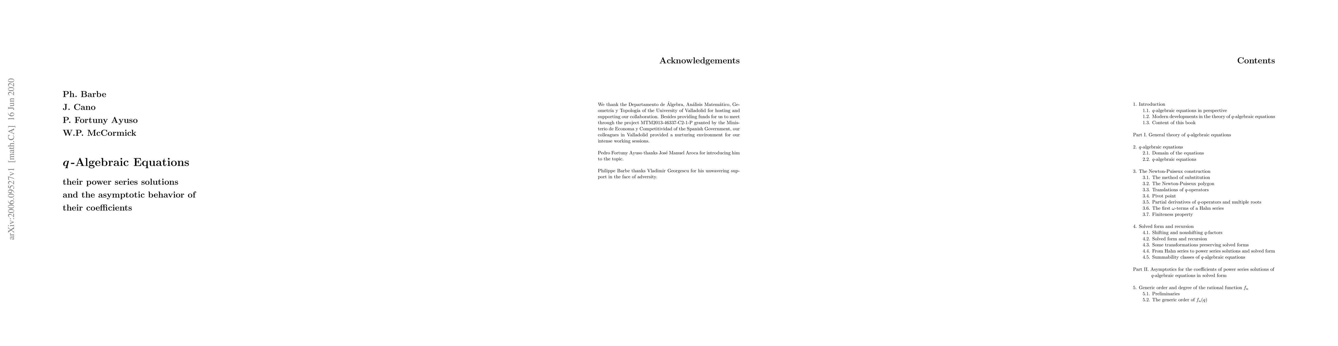 This paper systematically investigates q-algebraic equations, establishing existence, uniqueness, and regularity of solutions within the space of grid-based Hahn series. The study focuses on the asymptotic behavior of the coefficients of power series solutions, providing illustrative examples to demonstrate the results and algorithms.