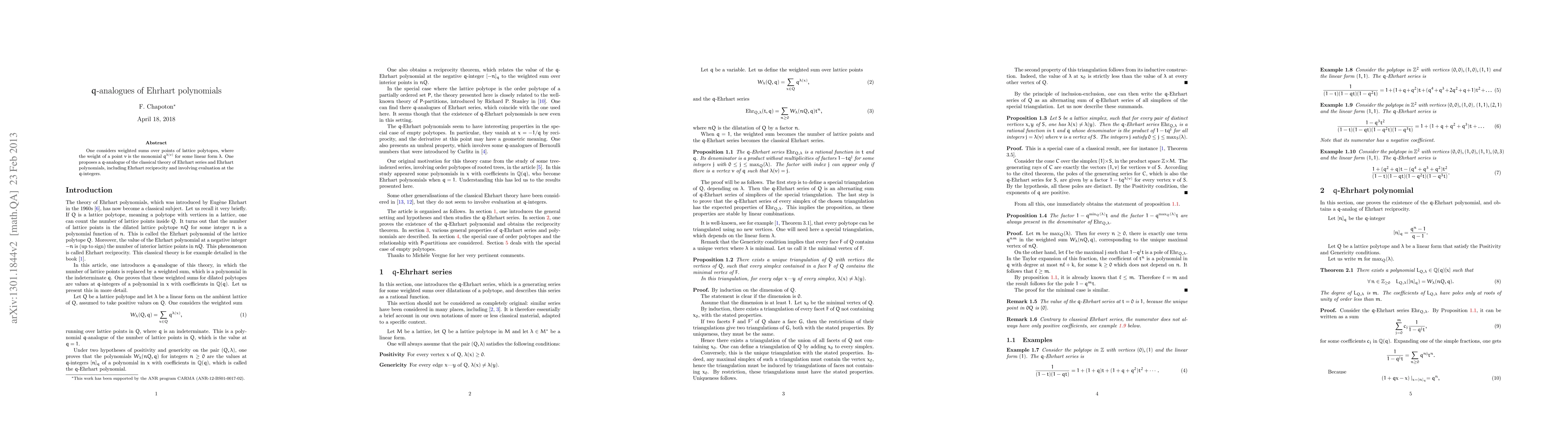 One considers weighted sums over points of lattice polytopes, where the weight of a point v is the monomial q^f(v) for some linear form f. One proposes a q-analogue of the classical theory of Ehrhart series and Ehrhart polynomials, including Ehrhart reciprocity and involving evaluation at the q-integers.