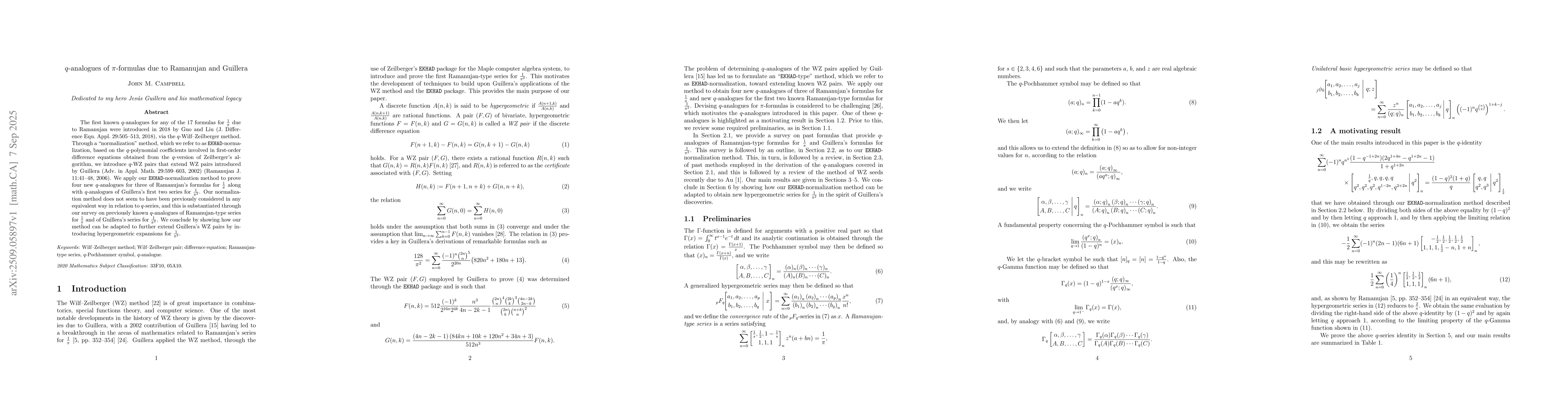The first known $q$-analogues for any of the $17$ formulas for $\frac{1}{\pi}$ due to Ramanujan were introduced in 2018 by Guo and Liu (J. Difference Equ. Appl. 29:505-513, 2018), via the $q$-Wilf-Zeilberger method. Through a "normalization" method, which we refer to as EKHAD-normalization, based on the $q$-polynomial coefficients involved in first-order difference equations obtained from the $q$-version of Zeilberger's algorithm, we introduce $q$-WZ pairs that extend WZ pairs introduced by Guillera (Adv. in Appl. Math. 29:599-603, 2002) (Ramanujan J. 11:41-48, 2006). We apply our EKHAD-normalization method to prove four new $q$-analogues for three of Ramanujan's formulas for $\frac{1}{\pi}$ along with $q$-analogues of Guillera's first two series for $\frac{1}{\pi^2}$. Our normalization method does not seem to have been previously considered in any equivalent way in relation to $q$-series, and this is substantiated through our survey on previously known $q$-analogues of Ramanujan-type series for $\frac{1}{\pi}$ and of Guillera's series for $\frac{1}{\pi^2}$. We conclude by showing how our method can be adapted to further extend Guillera's WZ pairs by introducing hypergeometric expansions for $\frac{1}{\pi^2}$.