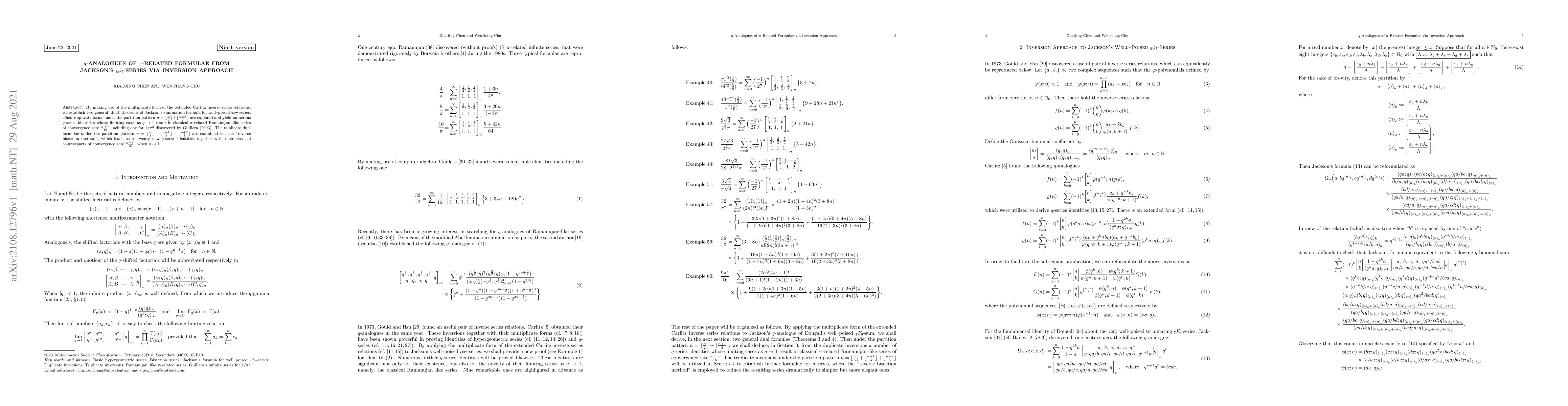 By making use of the multiplicate form of the extended Carlitz inverse series relations, we establish two general `dual' theorems of Jackson's summation formula for well--poised $_8\phi_7$-series. Their duplicate forms under the partition pattern $n=\lfloor{\frac{n}2}\rfloor+\lfloor{\frac{n+1}2}\rfloor$ are explored and yield numerous $q$-series identities whose limiting cases as $q\to1$ result in classical $\pi$-related Ramanujan--like series of convergence rate ``$\frac1{16}$" including one for $1/\pi^2$ discovered by Guillera (2003). The triplicate dual formulae under the partition pattern $n=\lfloor{\frac{n}3}\rfloor+\lfloor{\frac{n+1}3}\rfloor+\lfloor{\frac{n+2}3}\rfloor$ are examined via the ``reverse bisection method", which leads us to twenty new $q$-series identities together with their classical counterparts of convergence rate ``$\frac{-1}{27}$" when $q\to1$.