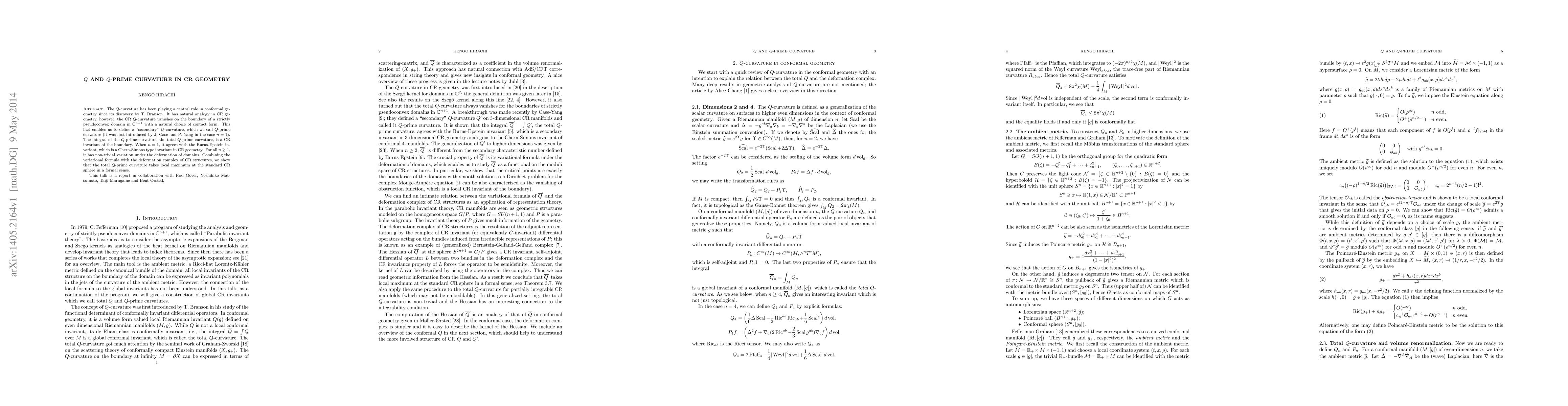 This paper explores the Q-prime curvature in CR geometry, a secondary concept analogous to Q-curvature in conformal geometry. The authors demonstrate that the total Q-prime curvature is a CR invariant and show it achieves a local maximum on the standard CR sphere, providing insights into the deformation of strictly pseudoconvex domains.