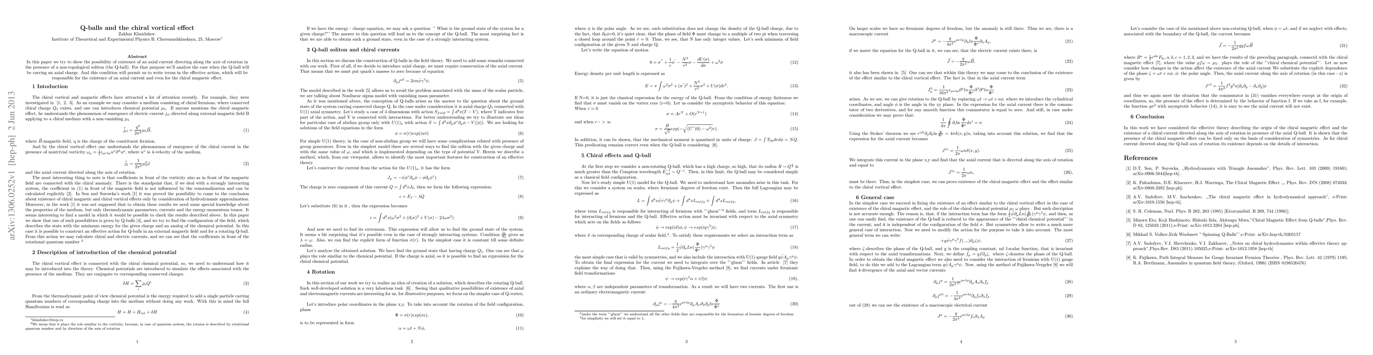 The paper considers the possibility of the existence of the axial current, that is directed along the axis of rotation and arises due to the presence of the Q-ball.