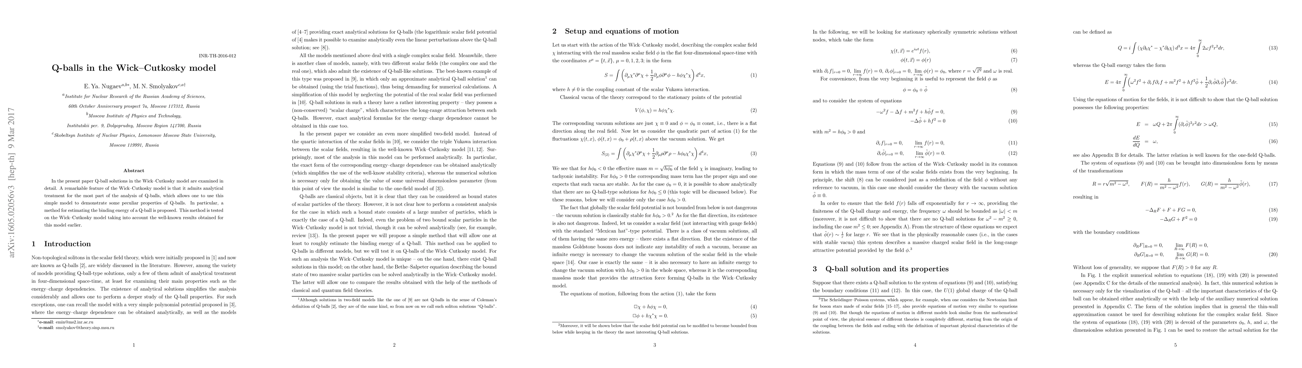Researchers studied Q-ball solutions in the Wick-Cutkosky model, proposing a method to estimate binding energy and testing it on the well-known results of this model.